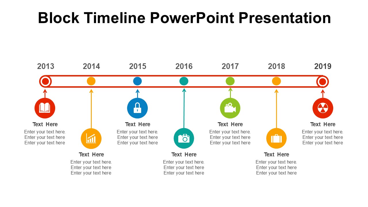 With Block Timeline PowerPoint Presentation, you can create professional-looking timelines that effectively communicate your message to your audience. Whether you are presenting a historical timeline, project milestones, or a sales process, this template provides a user-friendly interface that makes it easy to customize the layout, colors, and fonts to match your branding.