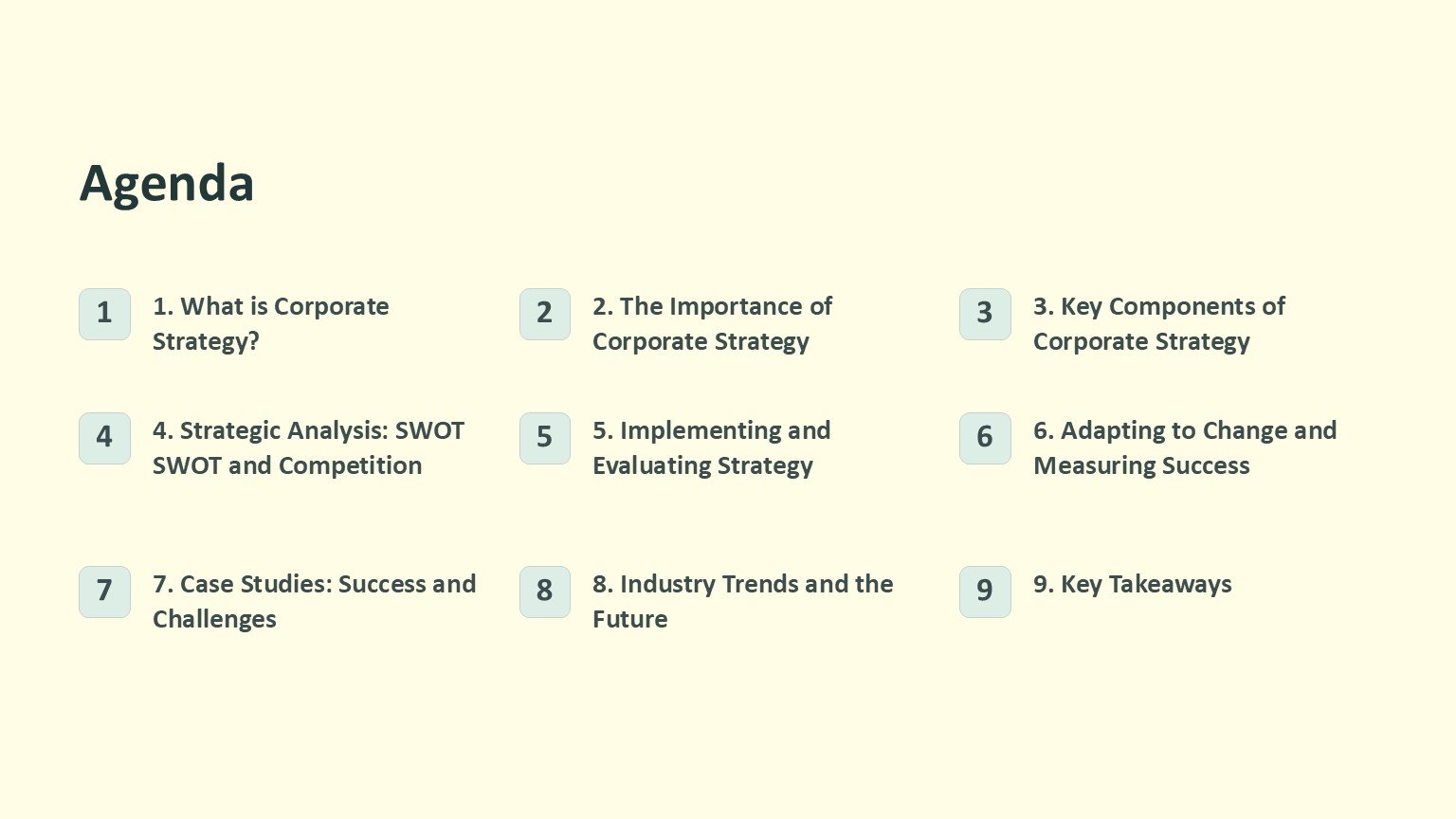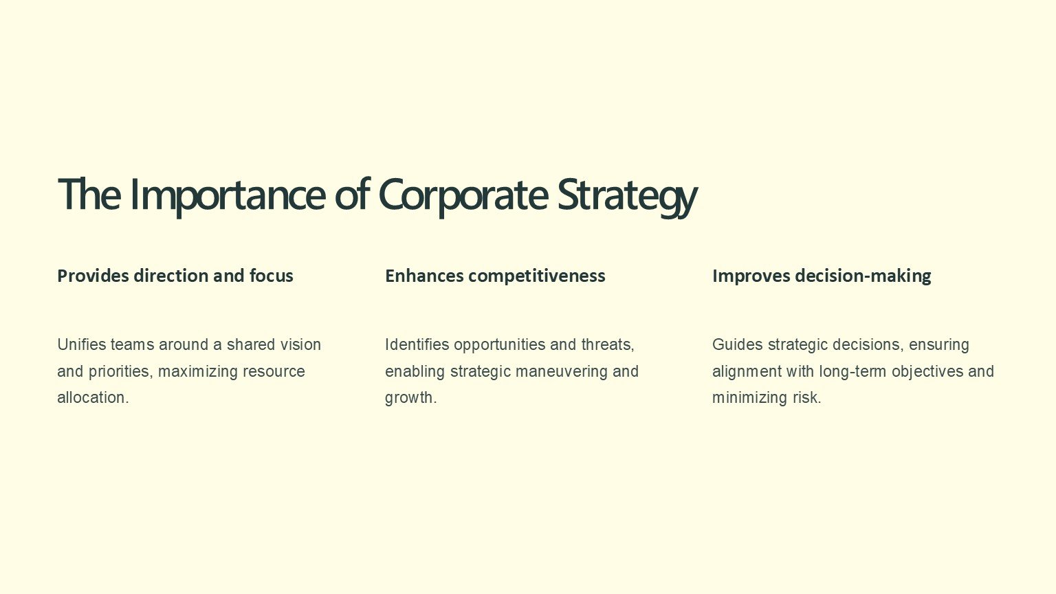 Overall, the Corporate Strategy PowerPoint Template is a versatile and user-friendly tool that will elevate your presentations and help you communicate your corporate strategy with clarity and impact.