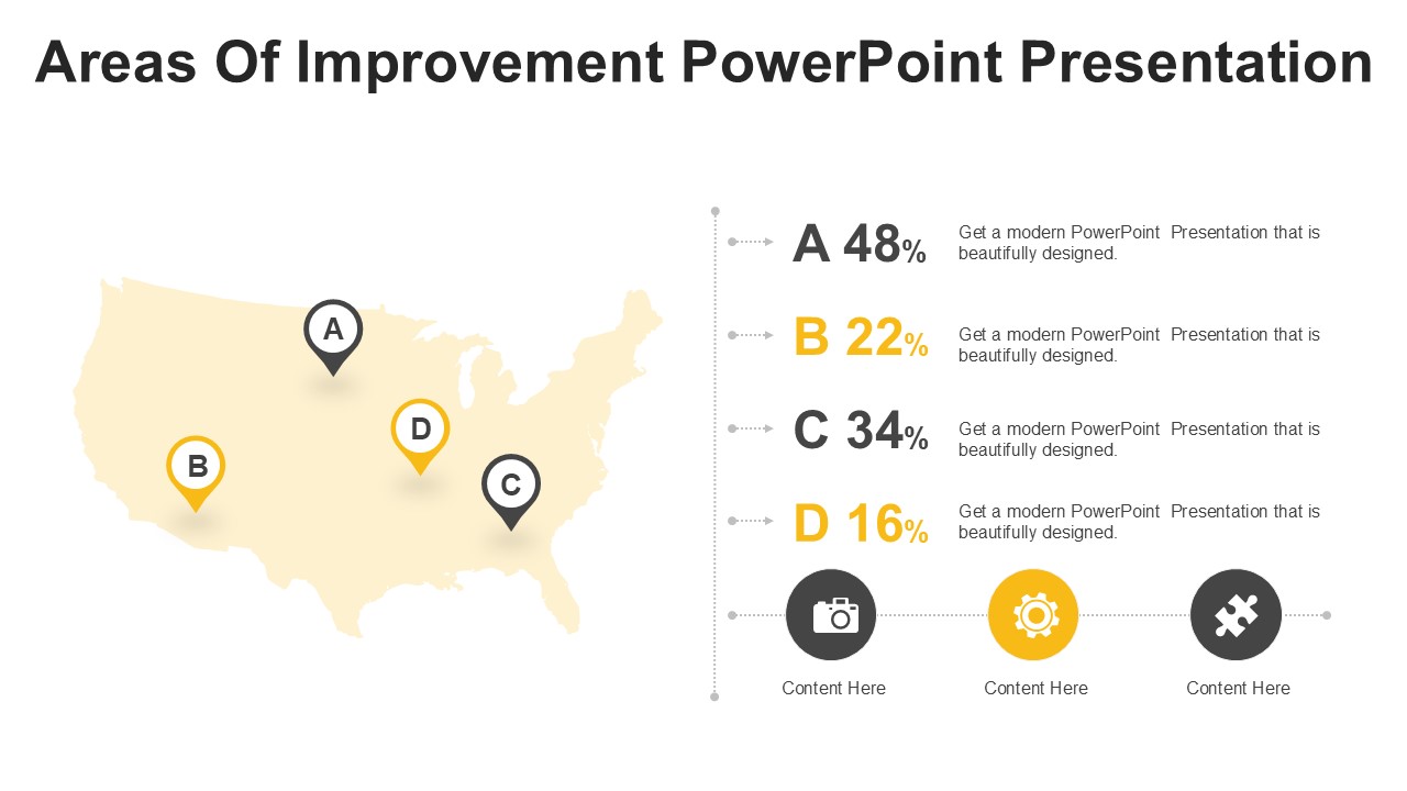 3. Data Visualization: With various chart and graph options, you can effectively visualize data and statistics related to areas of improvement, making it easier for your audience to grasp the information.
