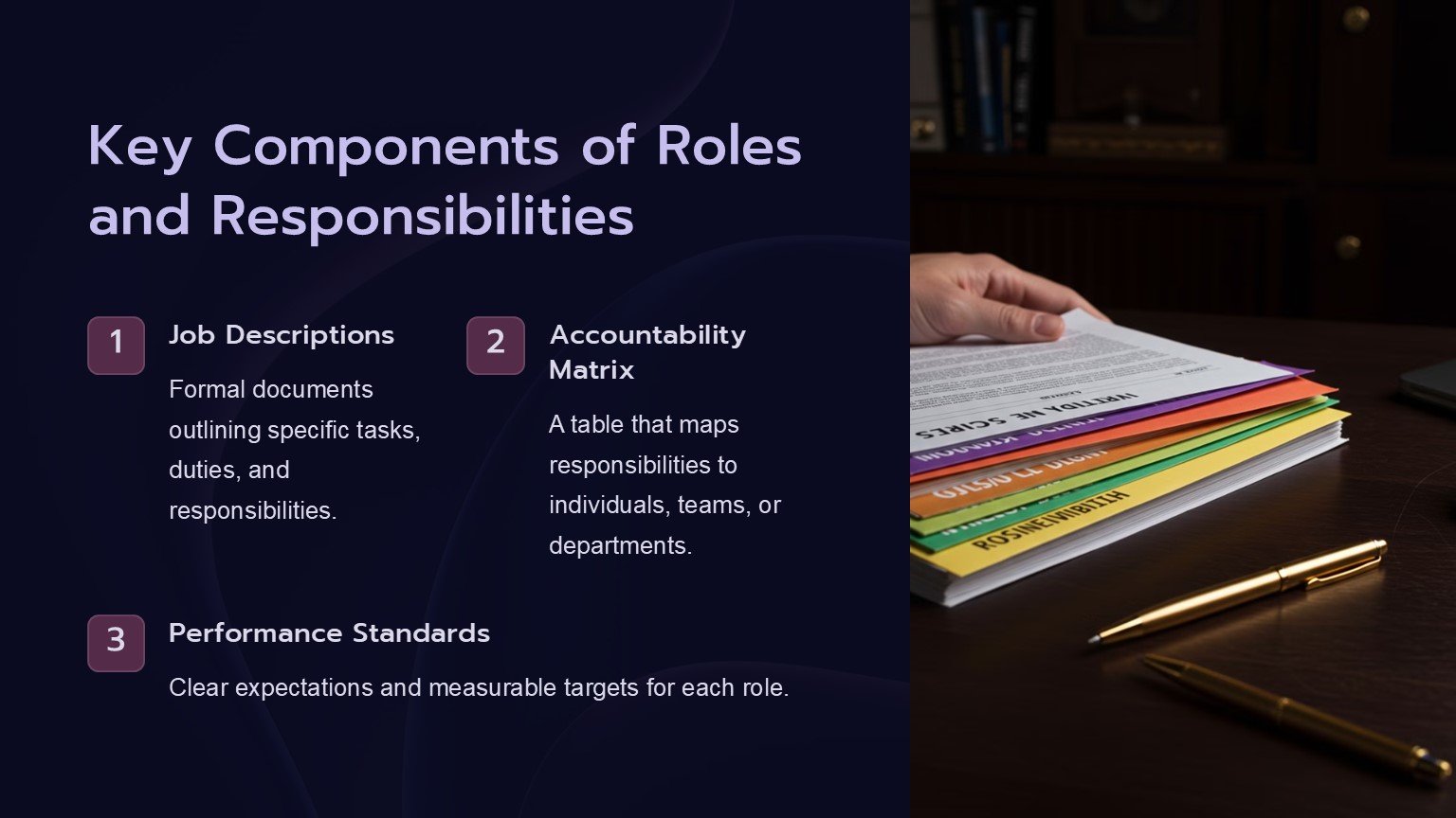 4. Clear Communication: The clean and organized design of the template helps ensure that roles and responsibilities are clearly communicated to your audience, minimizing confusion and improving teamwork.