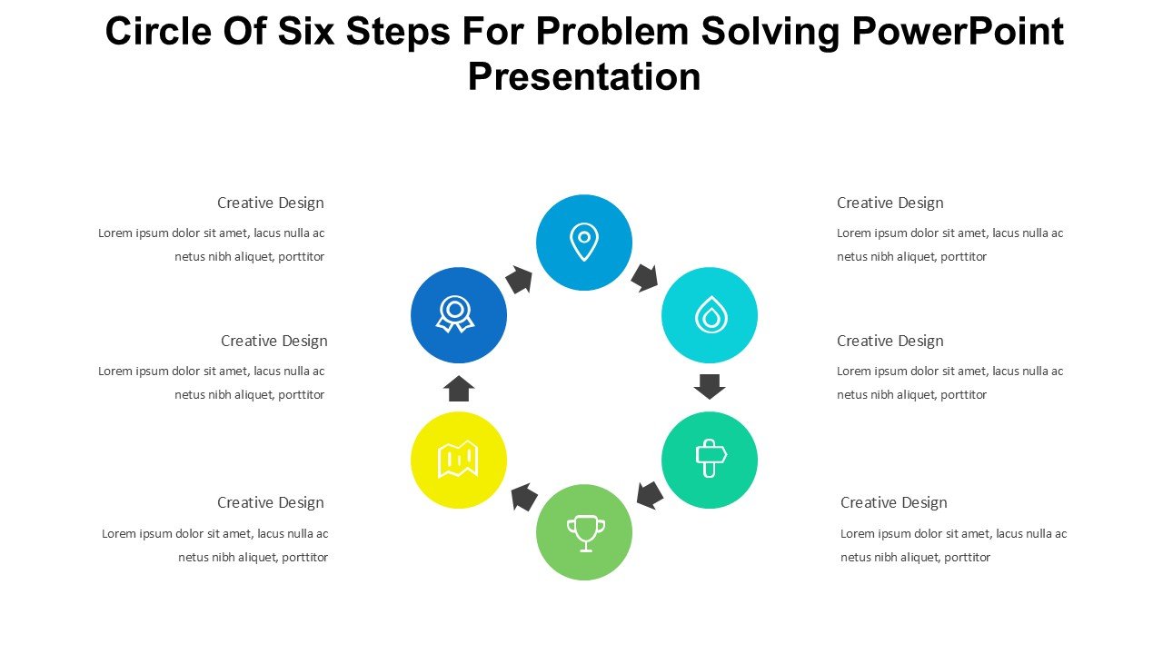 Circle Of Six Steps For Problem Solving PowerPoint Presentation
