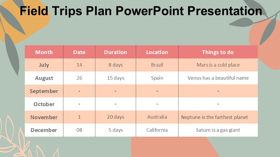 Field Trips Plan PowerPoint Presentation