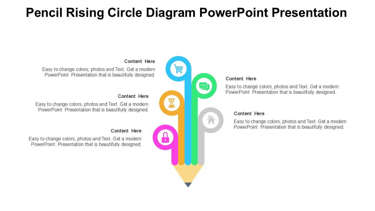 Pencil Rising Circle Diagram PowerPoint Presentation