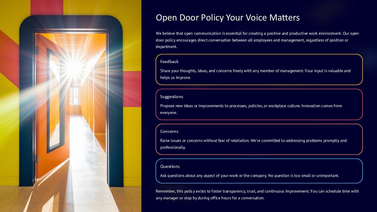 Open Door Policy Your Voice Matters PowerPoint Presentation