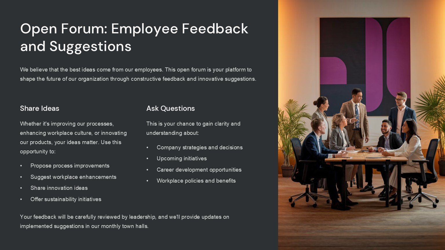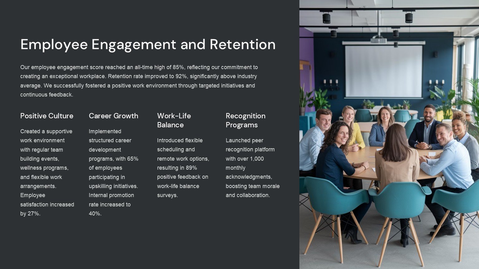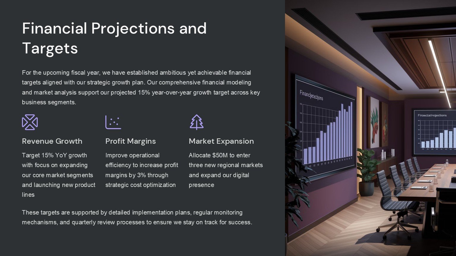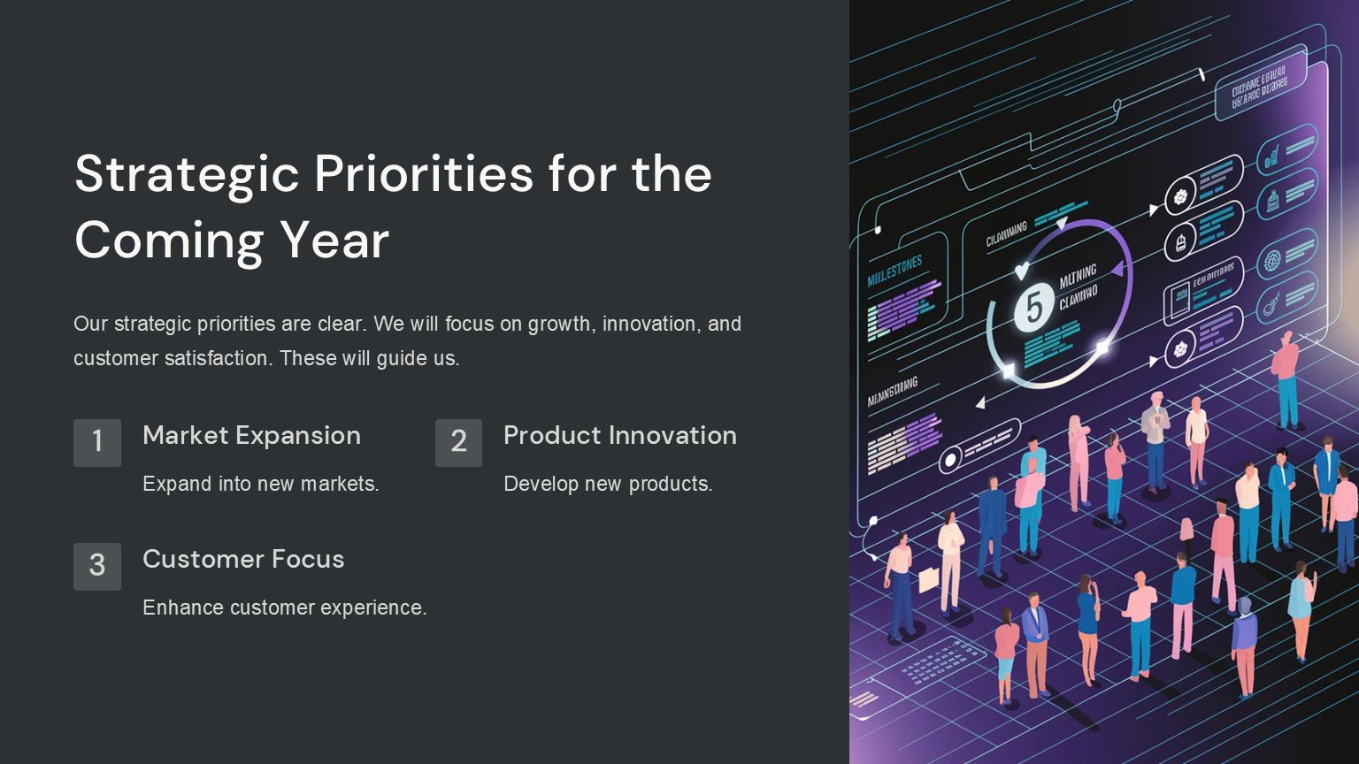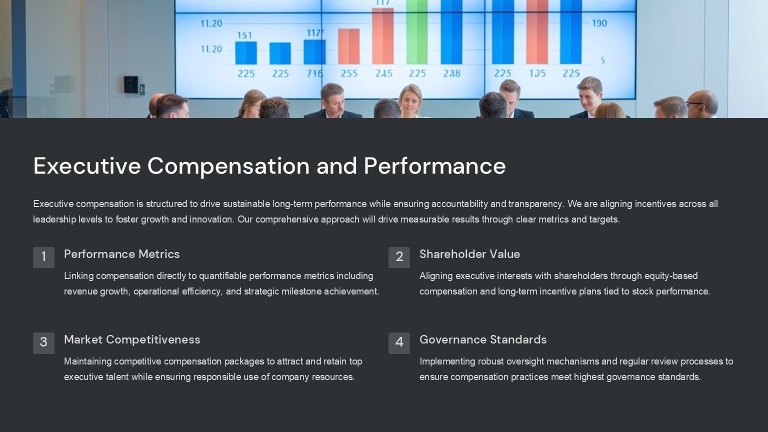 With 30 unique slides included in the template, you will have plenty of options to showcase your meeting agenda, highlights from the past year, key achievements, and future goals. The template features a cohesive color scheme and stylish typography to ensure a cohesive and professional look throughout your presentation.