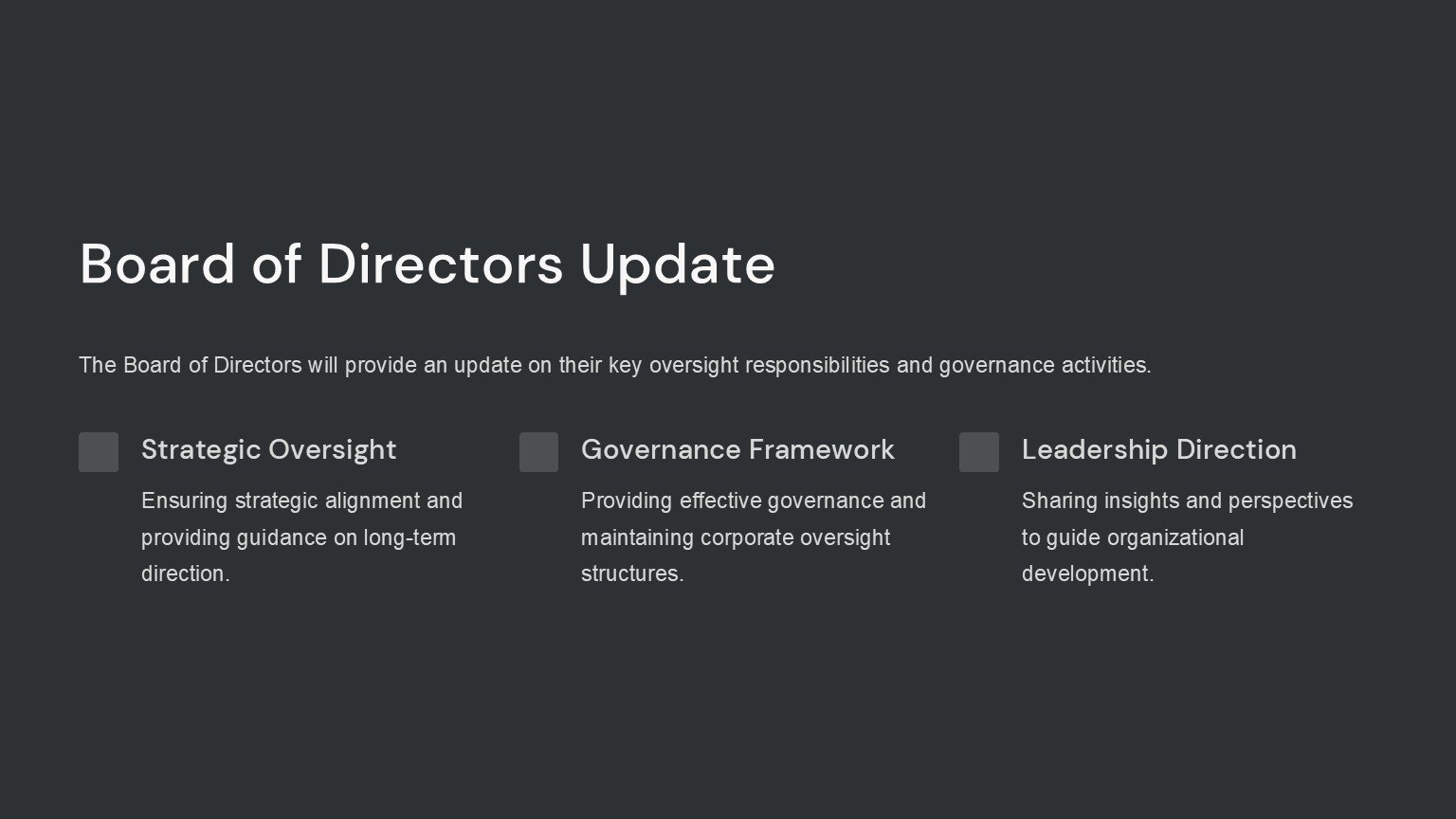 – 30 professionally designed slides to cover all aspects of your annual meeting