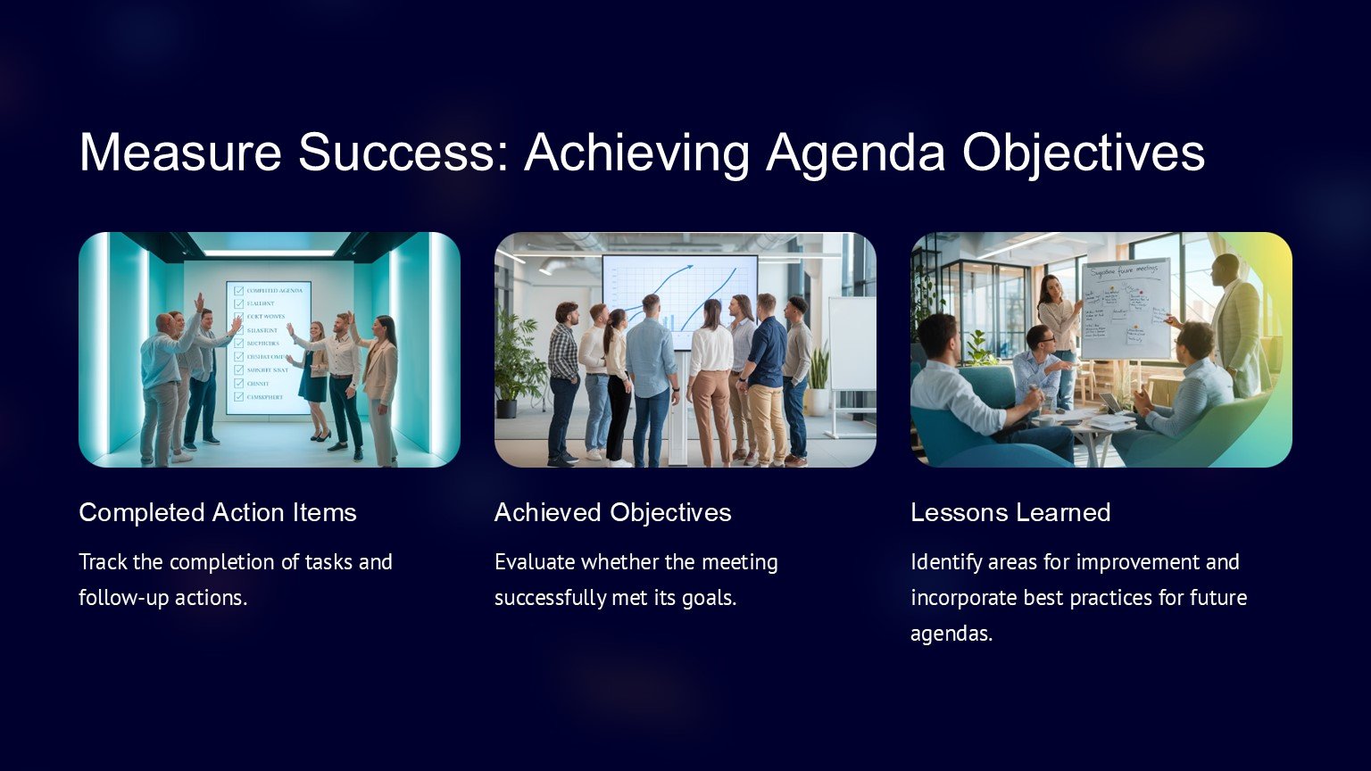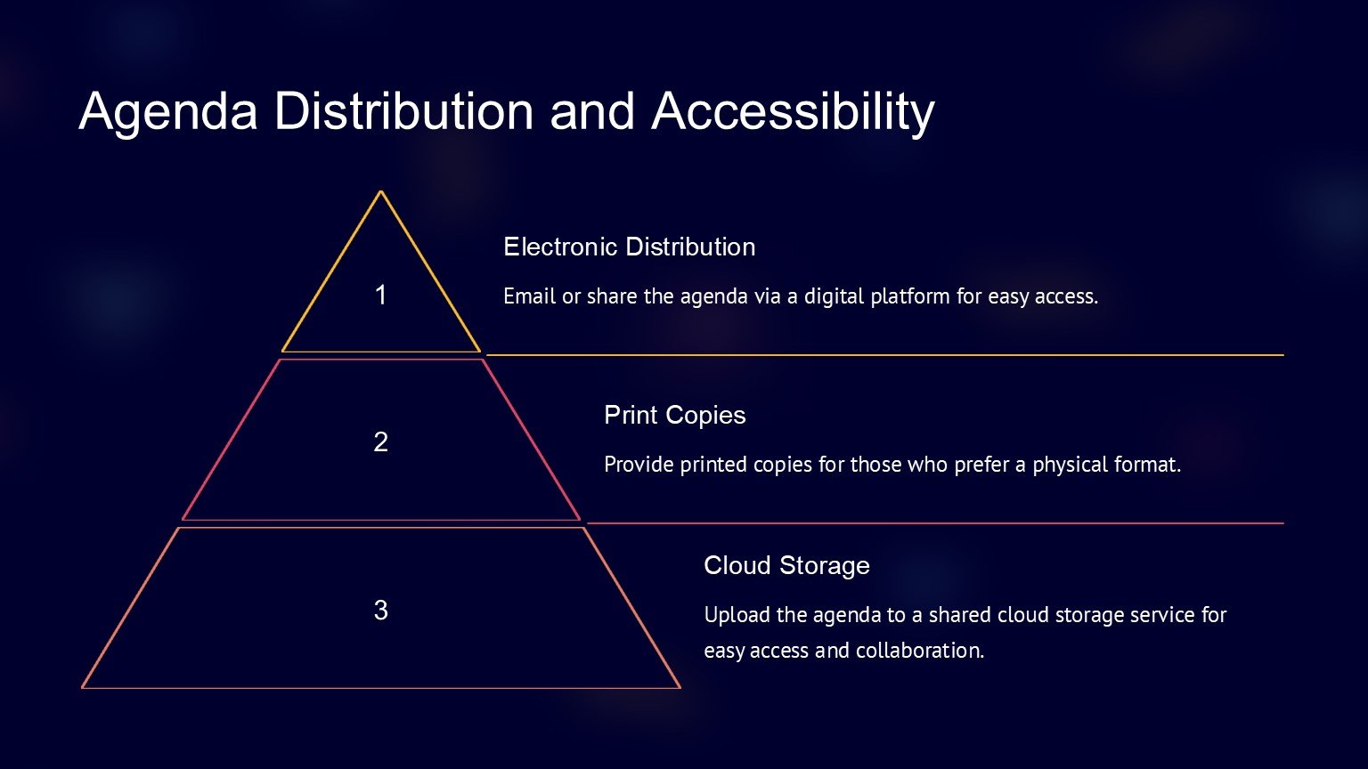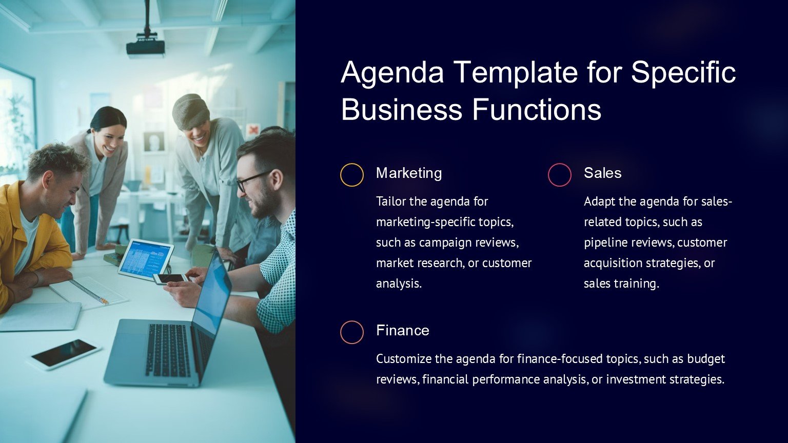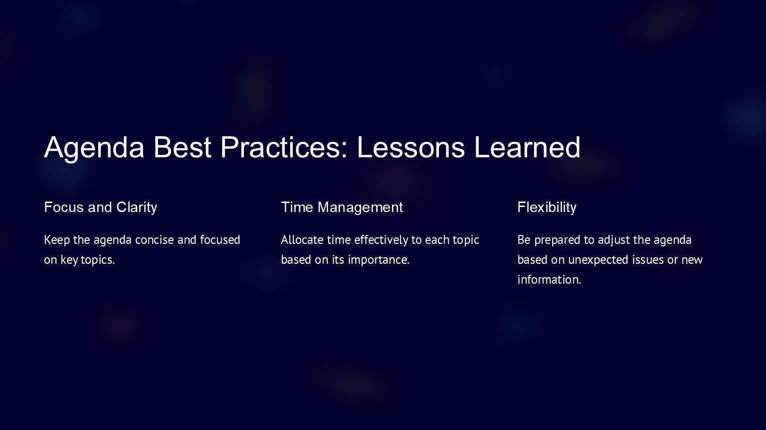 One of the key features of the Business Agenda PowerPoint Template is its fully editable design. This means that you can customize the colors, fonts, and layout of the slides to suit your brand or personal preferences. You can also add or remove agenda items, adjust the timeline, and rearrange the slides to create a customized agenda that meets your specific needs.