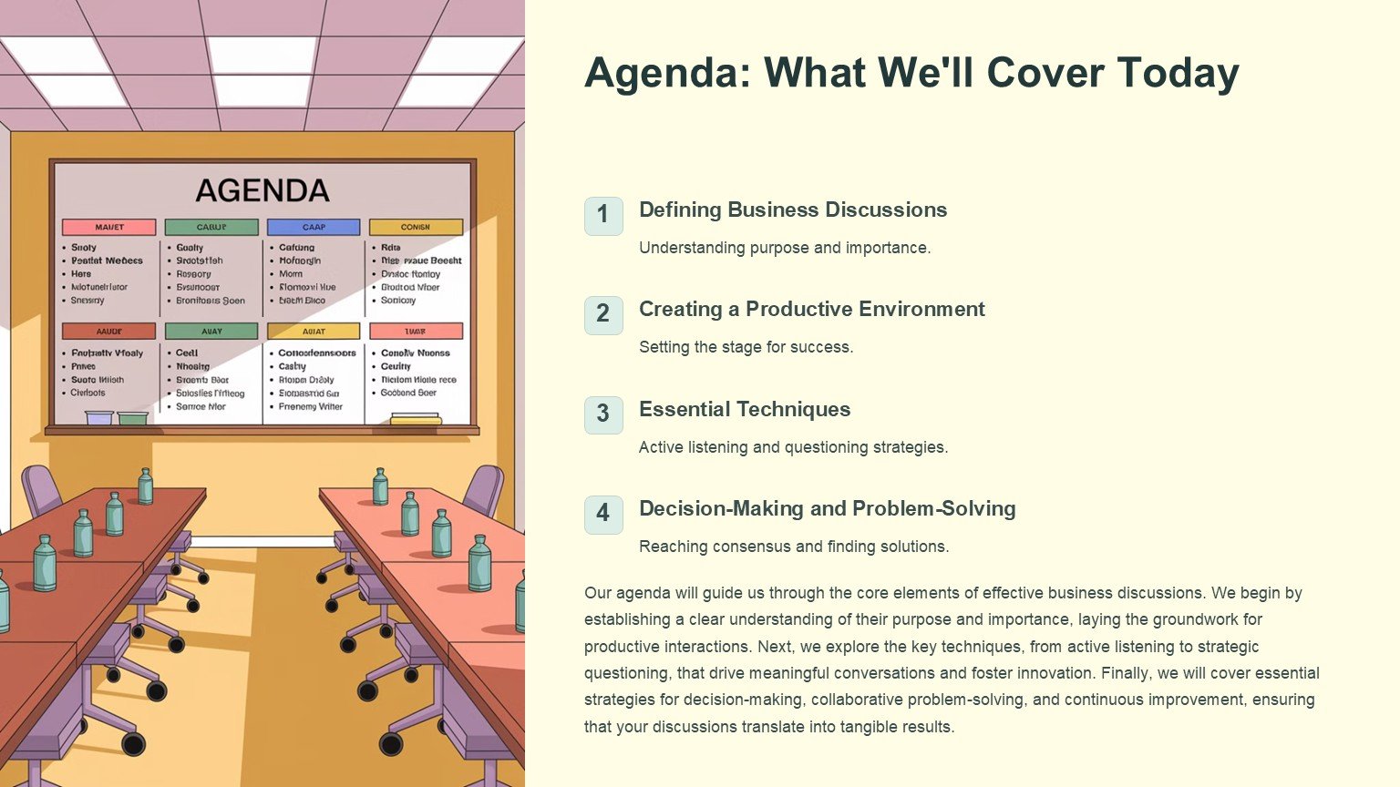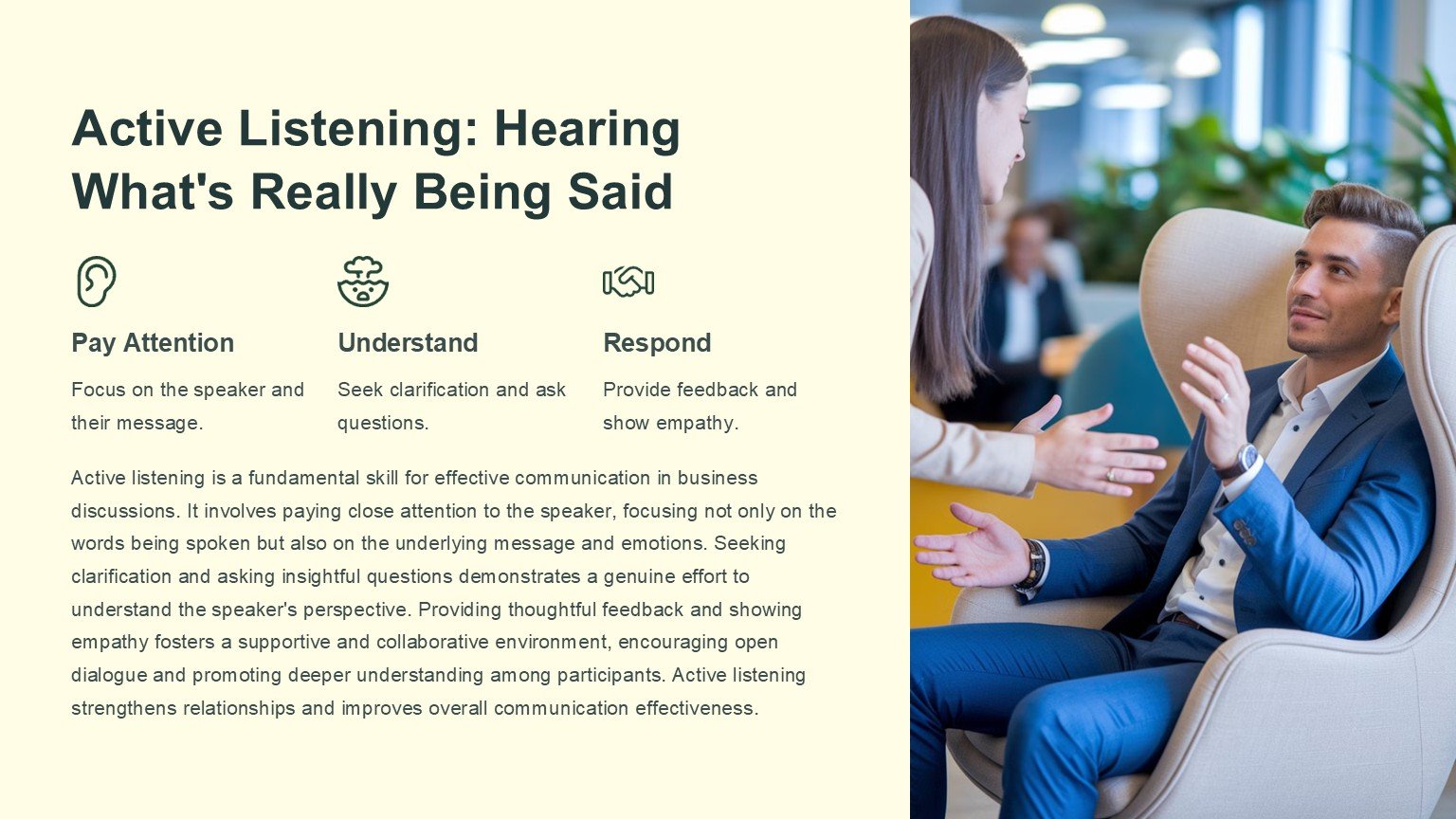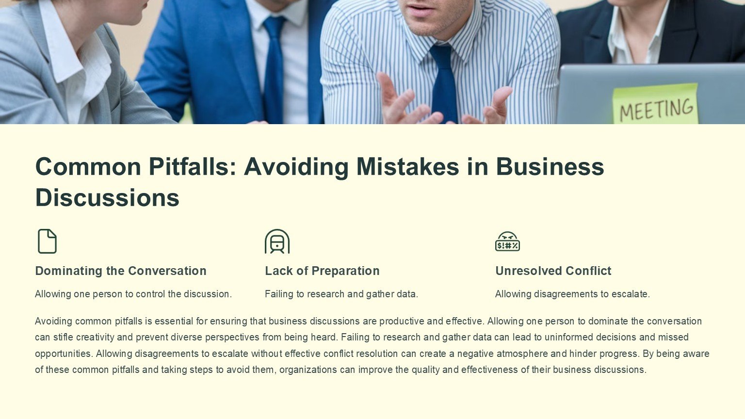 Key features of the Business Discussion PowerPoint Template include: