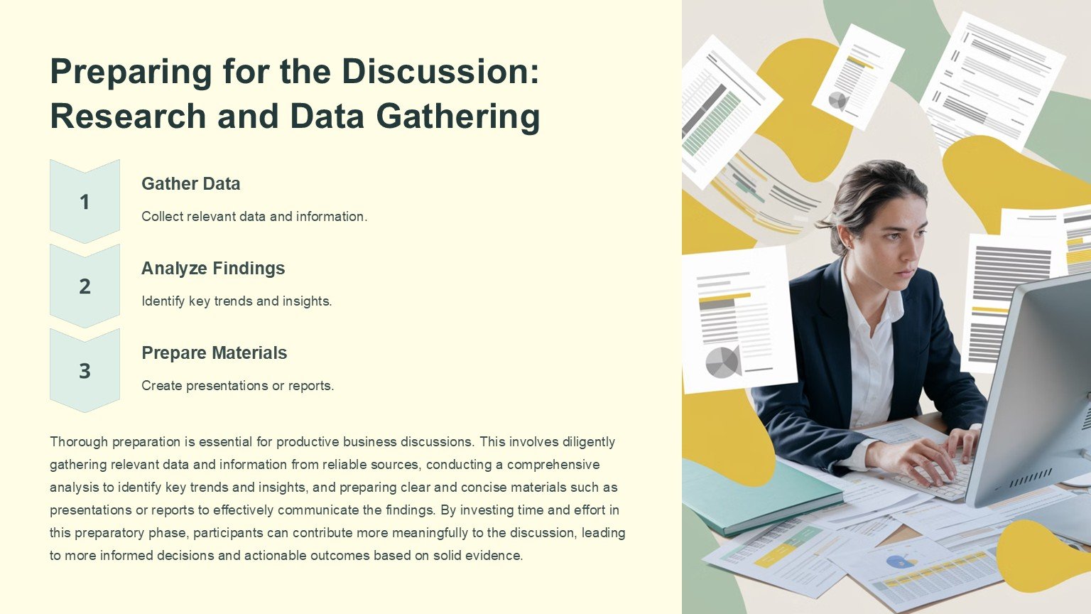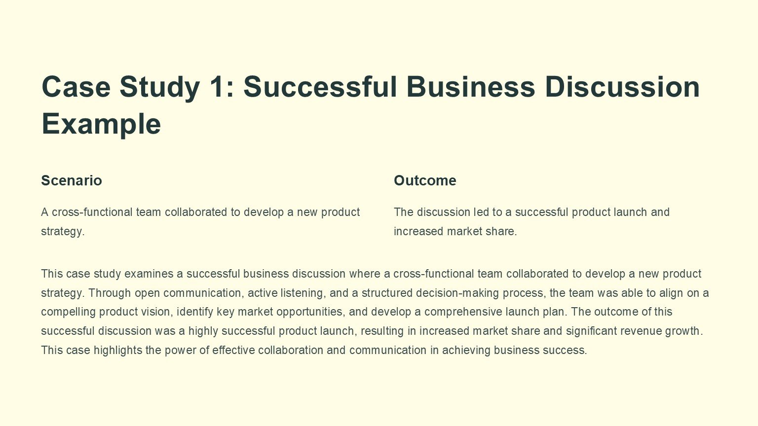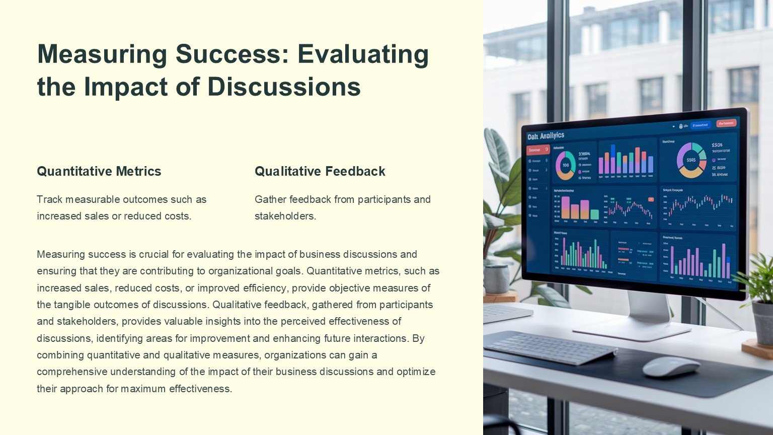 Introducing our Business Discussion PowerPoint Template, a versatile and professional presentation tool designed to help you convey your business ideas effectively. Whether you are conducting a team meeting, pitching a new project to clients, or presenting financial data to stakeholders, this template has got you covered.