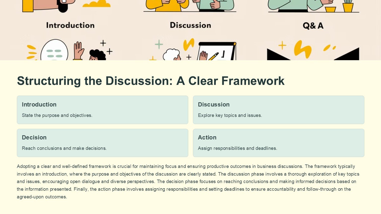 With the Business Discussion PowerPoint Template, you can save time on designing your presentation from scratch and focus on crafting a compelling narrative that will captivate your audience. Impress your colleagues, clients, and stakeholders with a professional and polished presentation that highlights your business acumen and vision.