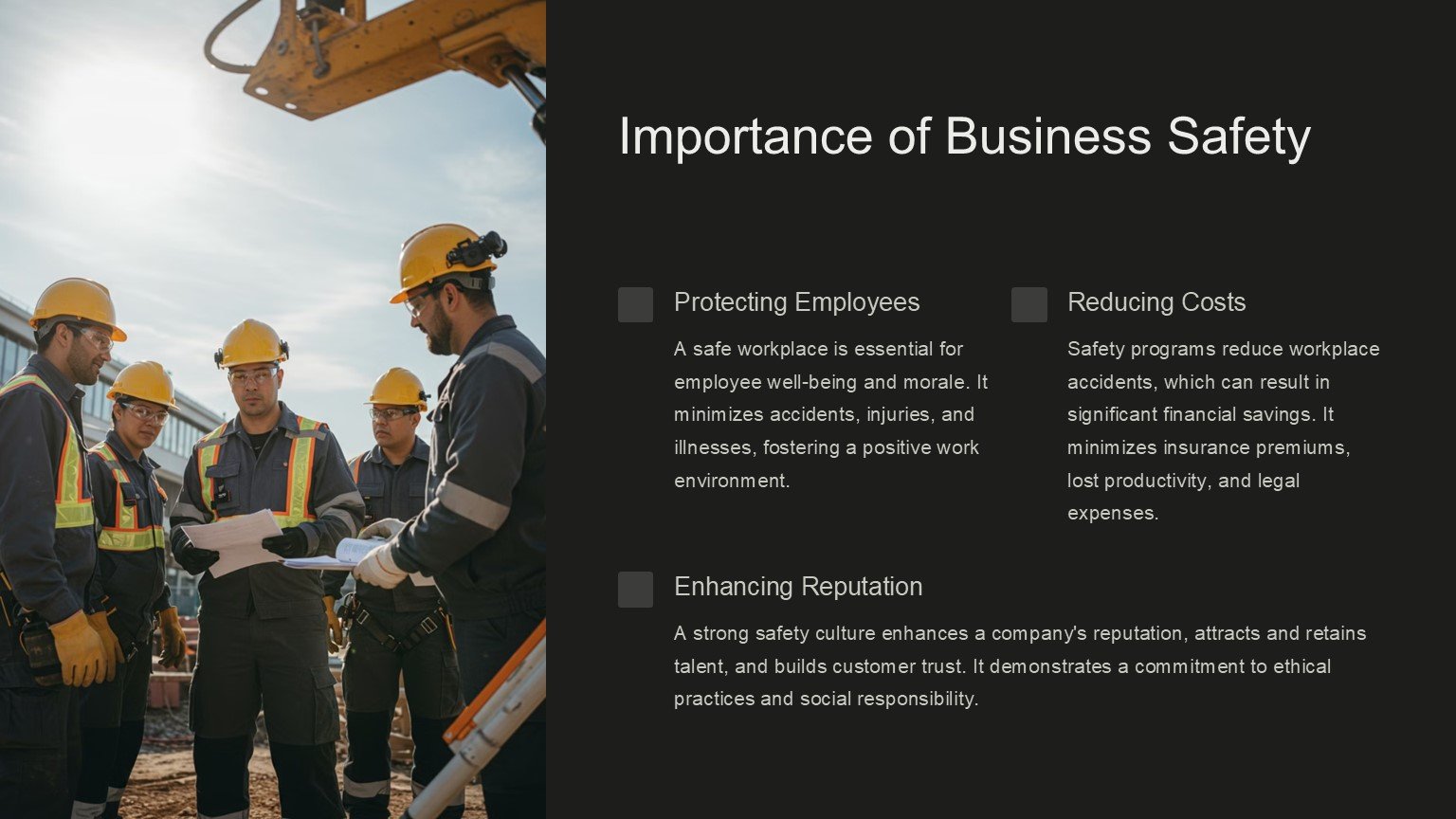 – Professionally designed slides for safety-related presentations