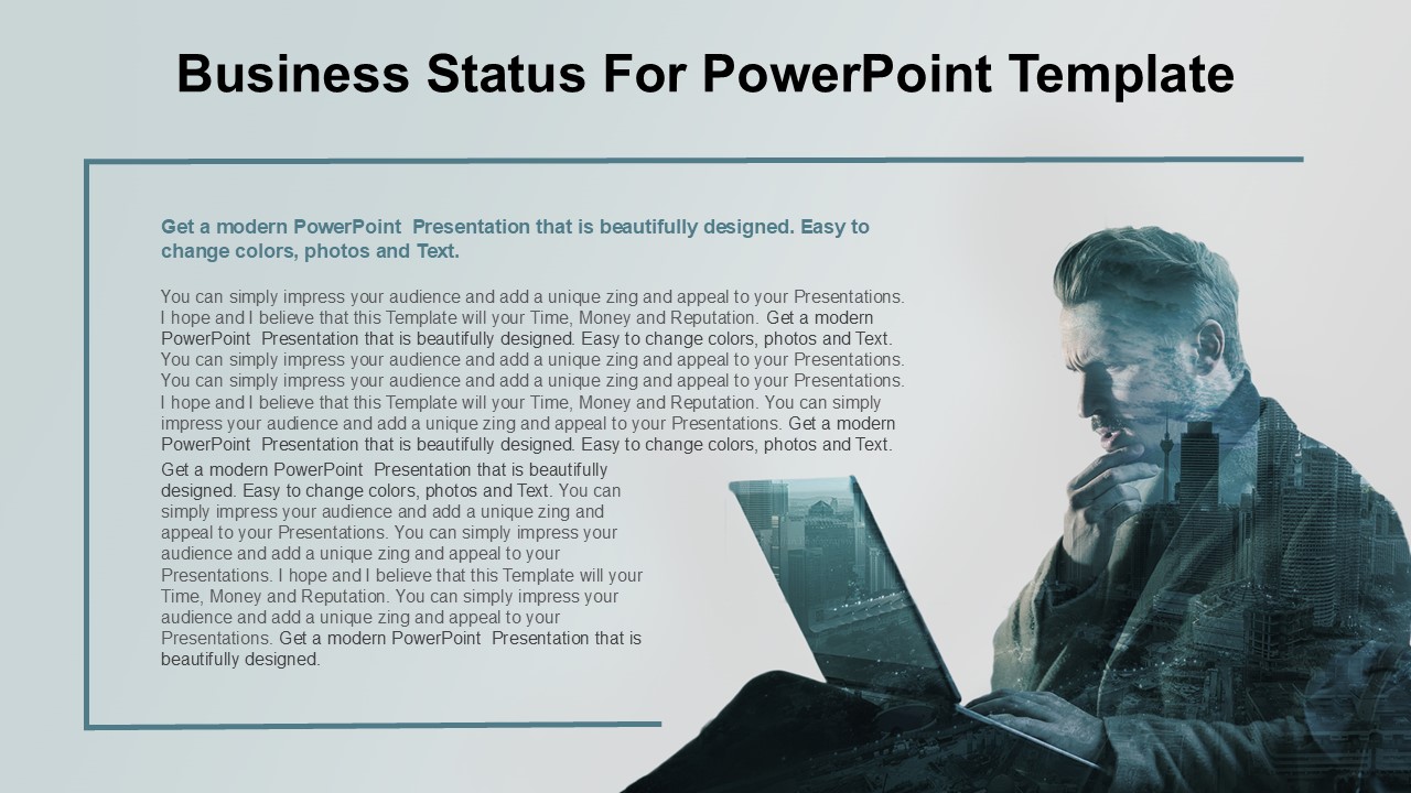 The Business Status PowerPoint Template features a modern and clean design with easy-to-read text placeholders and eye-catching graphics. The template includes a variety of slide layouts that are perfect for showcasing financial data, performance metrics, project updates, and more. Whether you need to present your quarterly sales report, outline your business strategy for the upcoming year, or provide an update on key initiatives, this template has you covered.