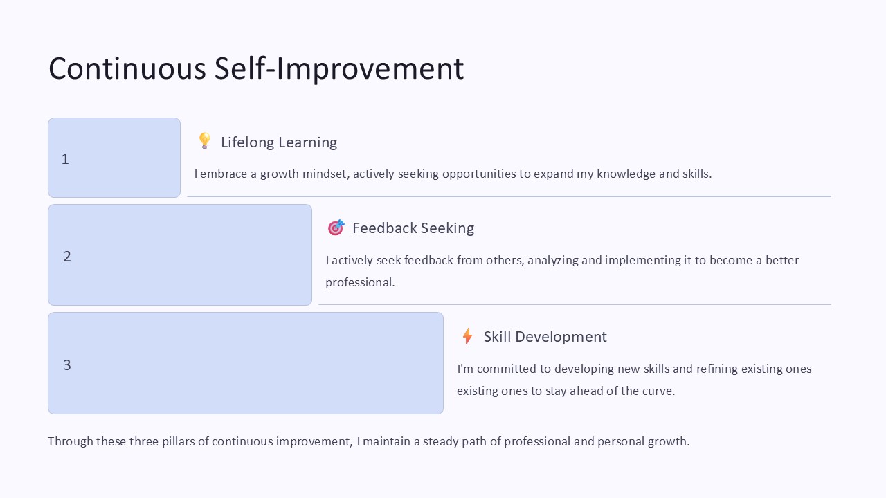 In conclusion, the Continuous Self Improvement PowerPoint Presentation is a valuable resource for anyone looking to embark on a journey of personal and professional growth. With its user-friendly design and comprehensive content, this presentation will inspire and empower users to take control of their development and strive for excellence.