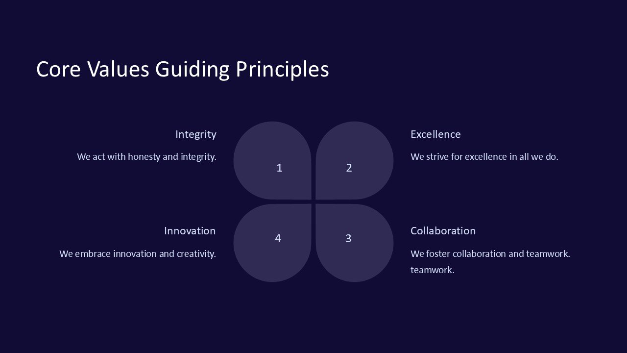 6. **Versatile Use Cases**: While this template is ideal for presenting core values and guiding principles, its versatile design makes it suitable for a wide range of other business or educational presentations.