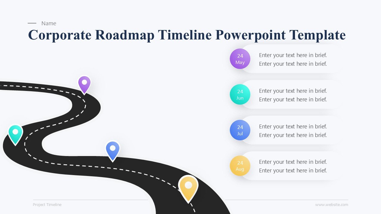 Features of the Corporate Roadmap Timeline PowerPoint Template include: