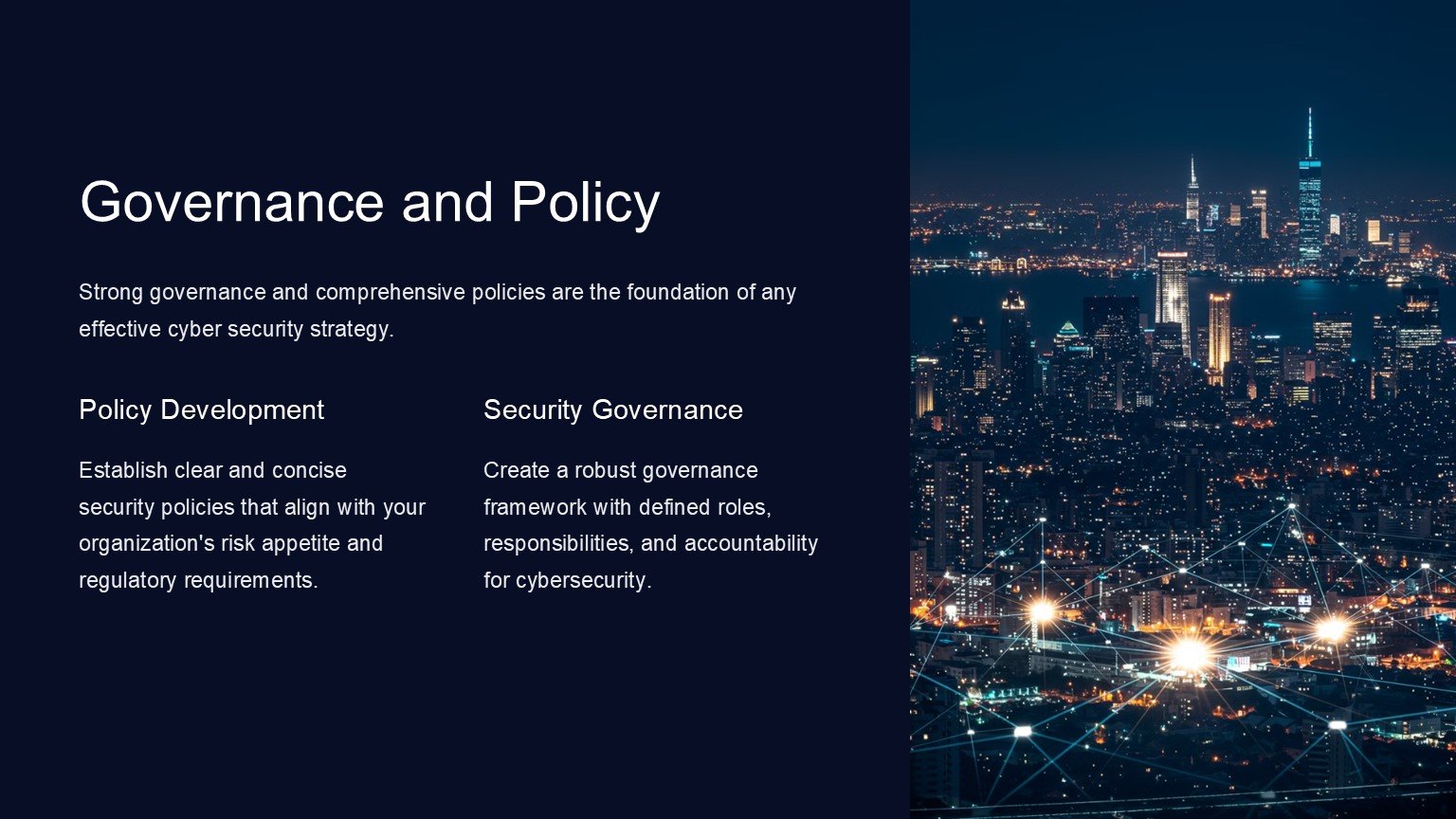 4. Versatile slides: The template includes a variety of slides for different aspects of cyber security strategy, making it easy to create a comprehensive and cohesive presentation.