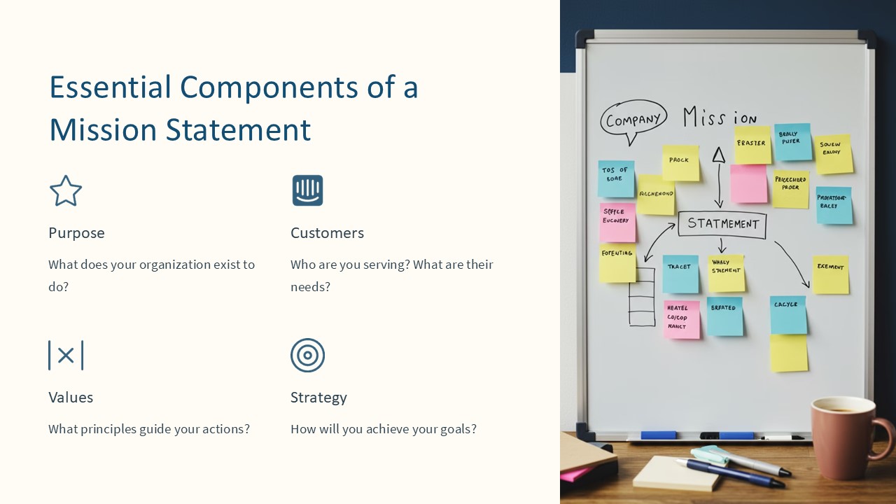2. Professionally designed slides: Each slide is designed to help you articulate the essential components of a mission statement clearly and effectively.