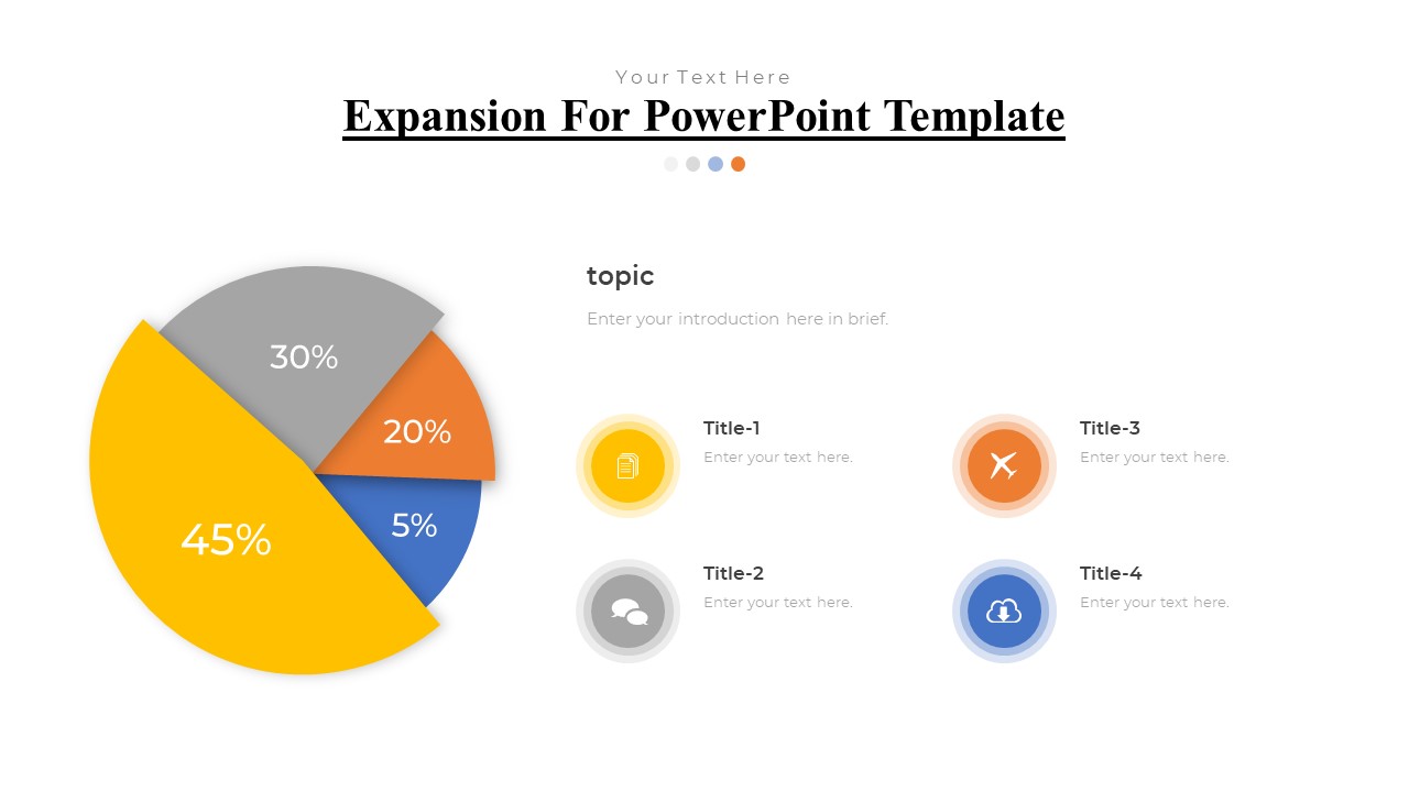 With Expansion For PowerPoint Template, you can easily create captivating presentations that will keep your audience engaged from start to finish. The template includes a wide range of slide layouts, from simple text slides to dynamic graphs and charts. Whether you are presenting at a conference, pitching to investors, or delivering a training session, this template has everything you need to create a professional and polished presentation.