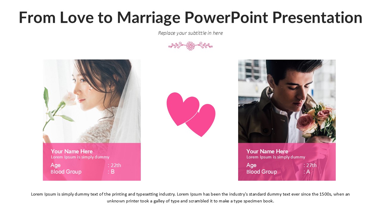 From Love to Marriage PowerPoint Presentation is the perfect tool for anyone looking to create a beautiful and memorable presentation for their wedding day. This professionally designed template includes a variety of slides that can be customized to fit your unique style and preferences.