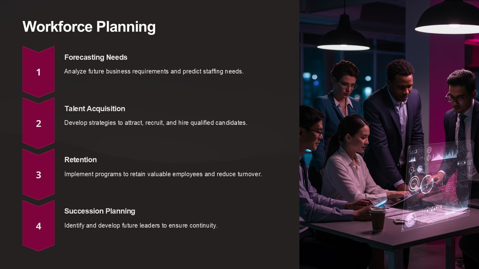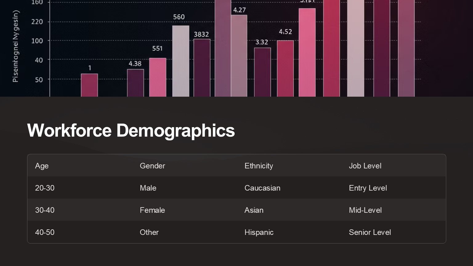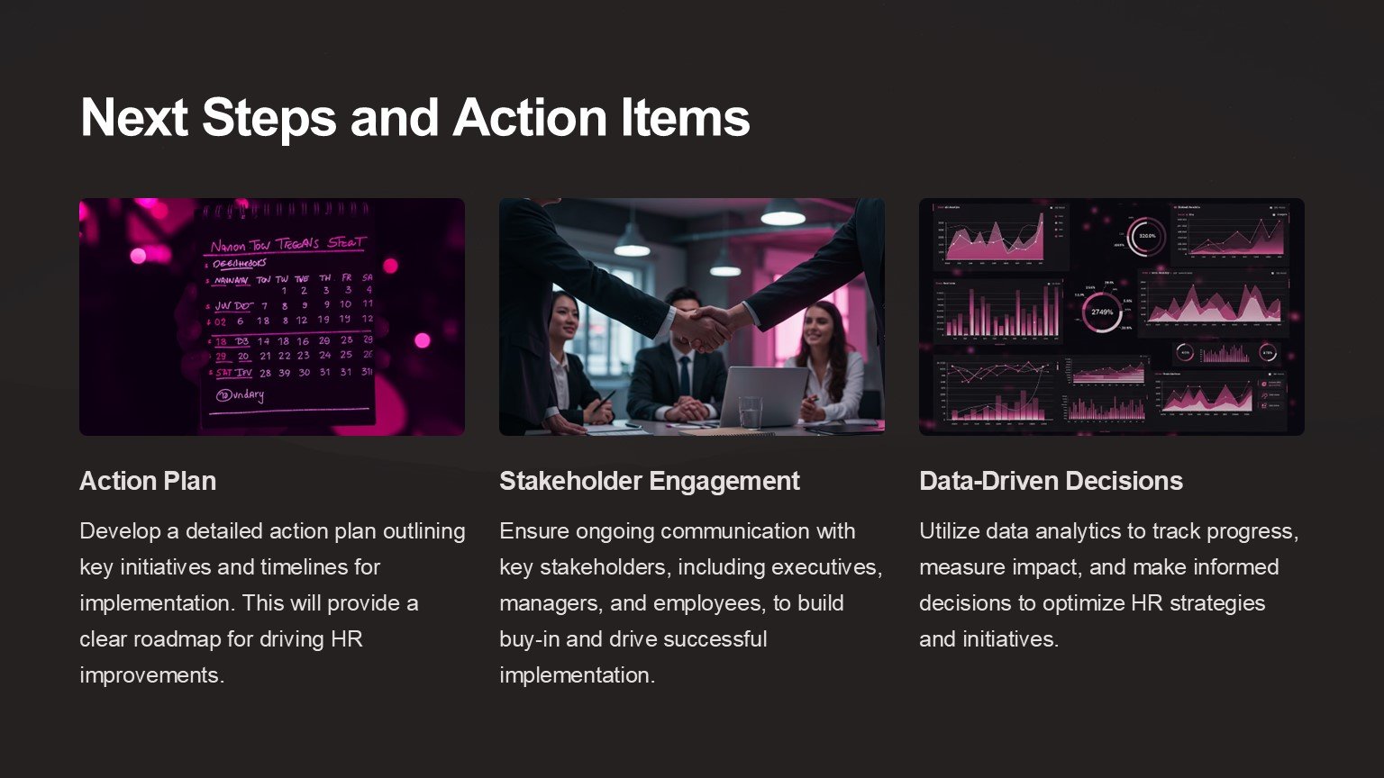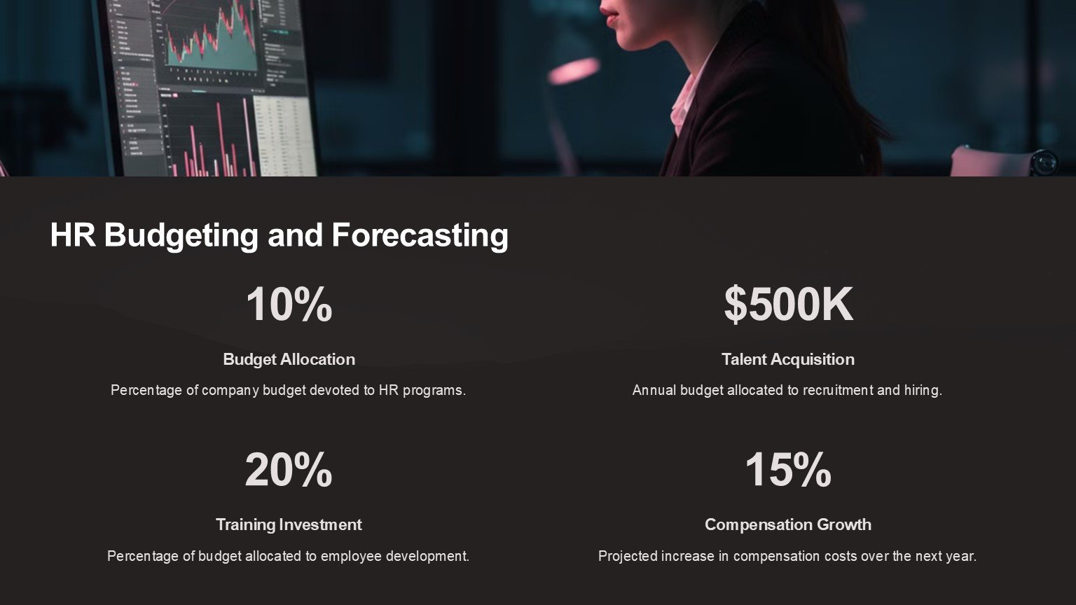 The template features a clean and modern design, with a focus on presenting data in a clear and concise manner. It includes a variety of slide layouts, such as charts, graphs, tables, and infographics, to help visualize HR data and trends effectively. Whether you need to showcase employee engagement metrics, turnover rates, recruitment statistics, or training progress, this template has you covered.