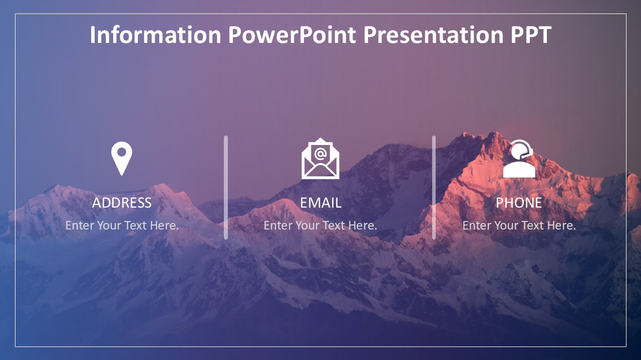 With our Information PowerPoint Presentation PPT template, you can create a polished and impactful presentation that will impress your audience and effectively convey your message. Elevate your presentations and stand out from the crowd with this versatile and user-friendly template.