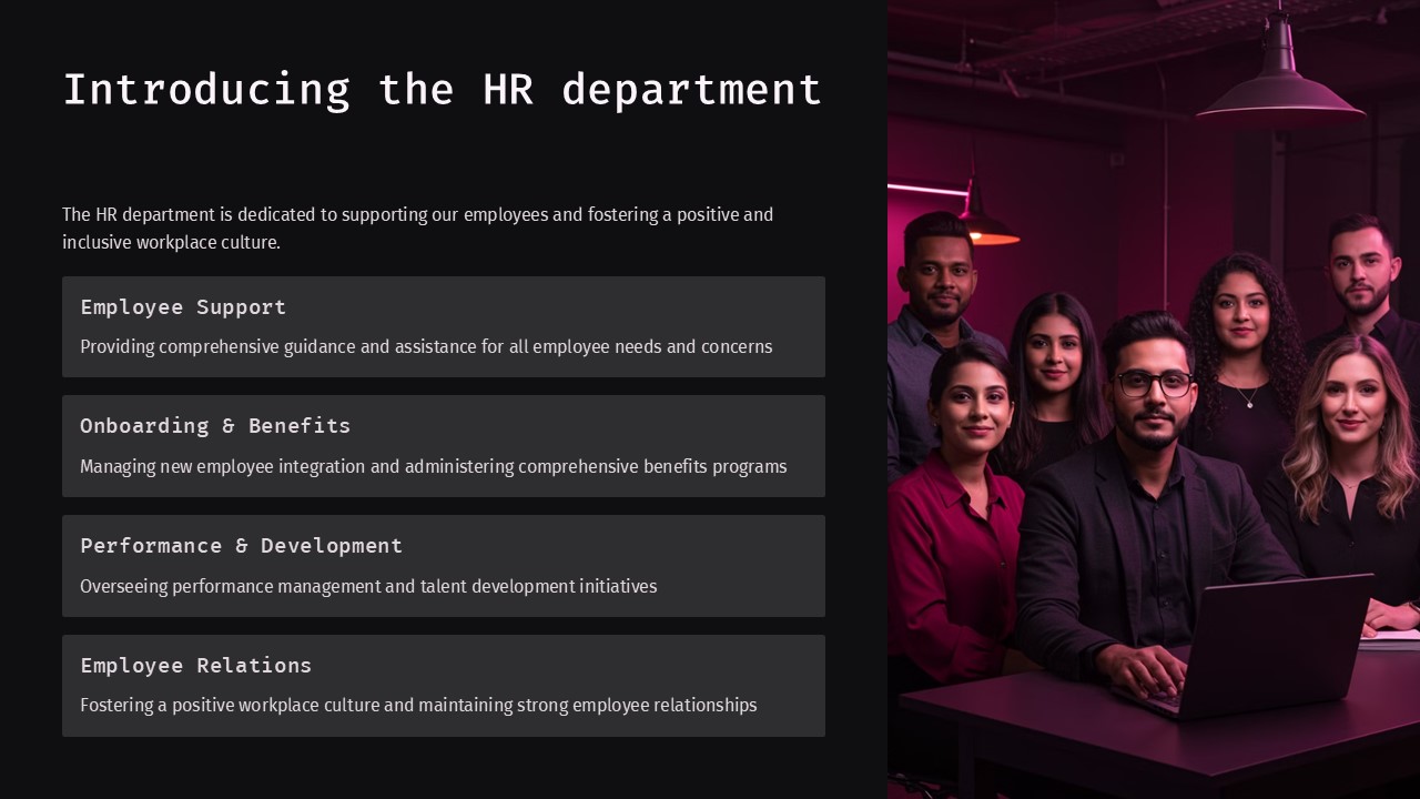 3. Clear and concise content that effectively communicates the key points about the HR department