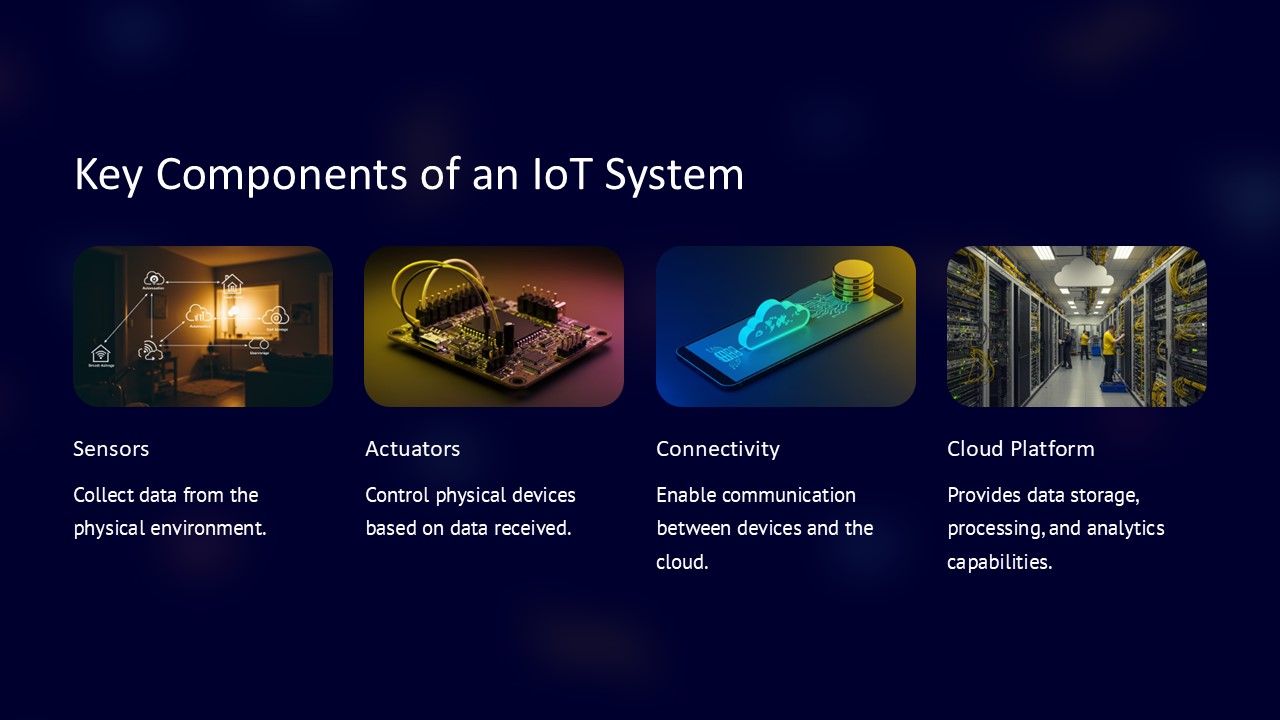 Key Components of an IoT System PowerPoint Presentation is a comprehensive and visually appealing template designed to provide a detailed overview of the key elements that make up an Internet of Things (IoT) system. This professionally crafted presentation covers all the essential components required for building and implementing an IoT ecosystem effectively.