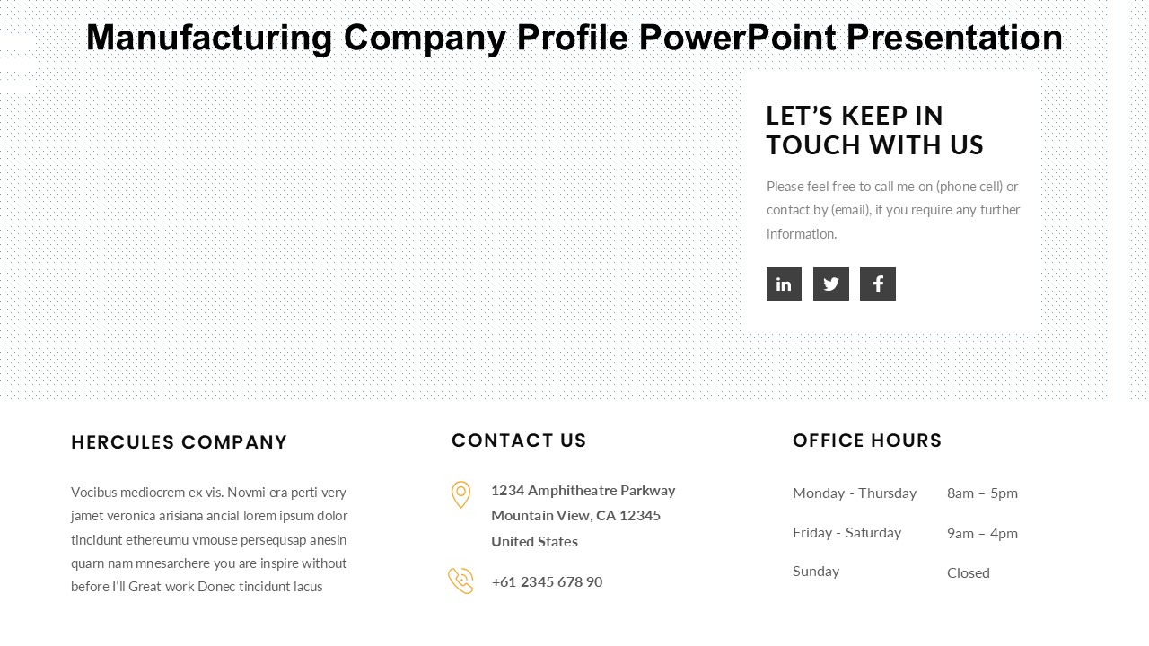 Whether you are looking to create a company profile for internal use or to present to external stakeholders, the Manufacturing Company Profile PowerPoint Presentation template offers a comprehensive solution that meets your presentation needs. It is a valuable tool that can help companies effectively communicate their strengths, capabilities, and achievements in the competitive manufacturing industry.