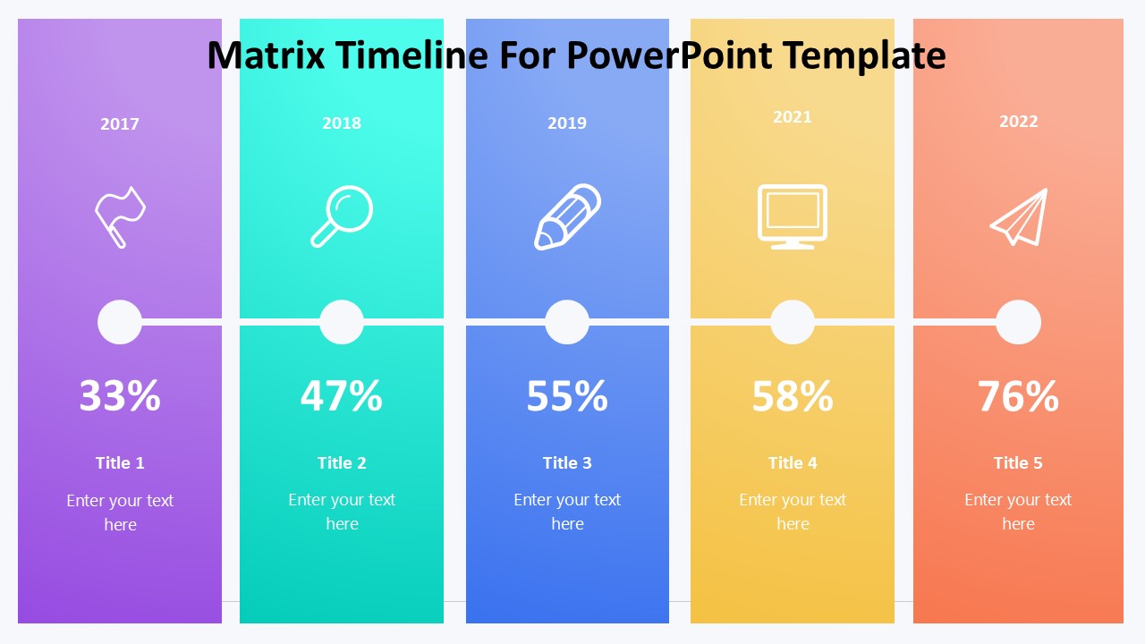 Overall, the Matrix Timeline for PowerPoint Template is a must-have tool for anyone looking to create compelling and informative timelines for their presentations. Elevate your next project update, business report, or historical overview with this easy-to-use and visually striking template.