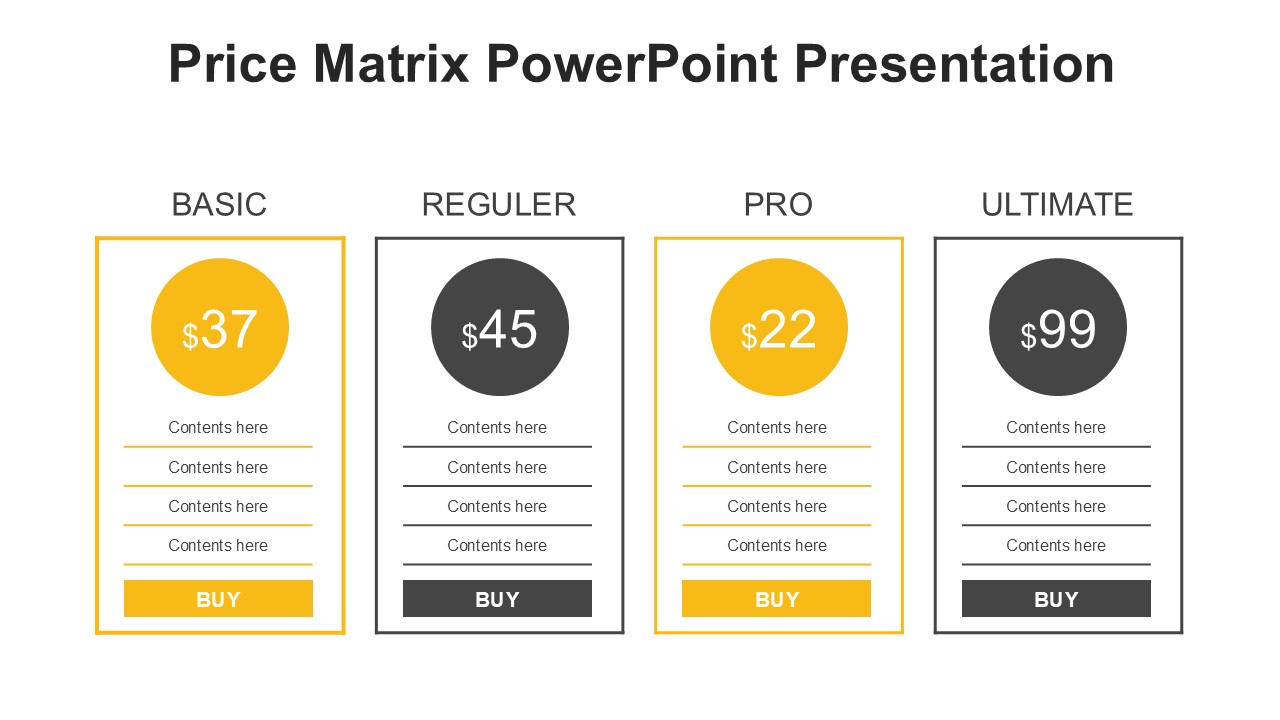 Features of Price Matrix PowerPoint Presentation: