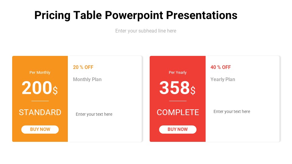 With our Pricing Table PowerPoint Presentations, you can create eye-catching and informative pricing tables that effectively communicate your offerings to your audience. Stand out from the competition and make a lasting impression with our professionally designed templates. Elevate your presentations with our Pricing Table PowerPoint Presentations today!