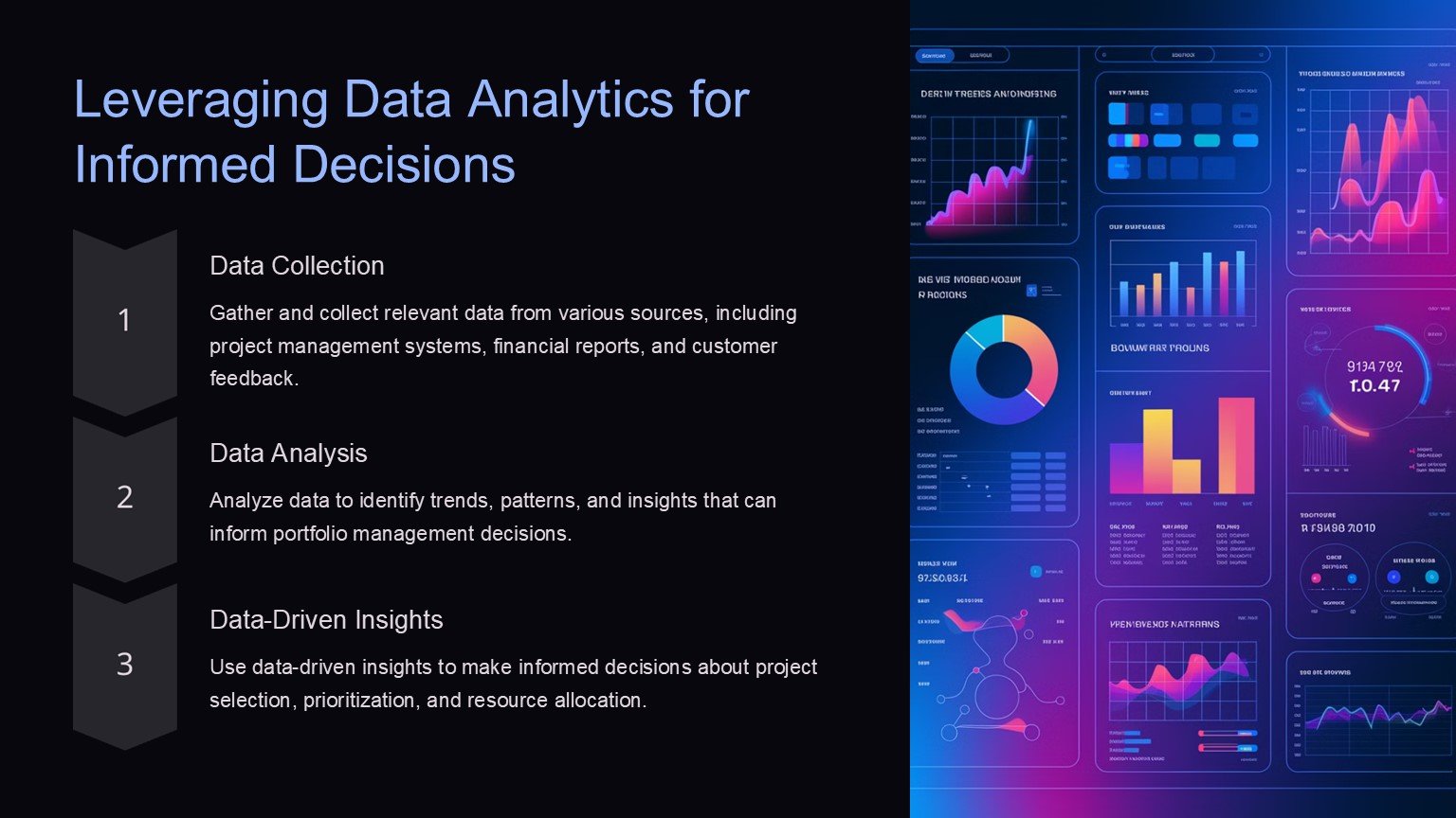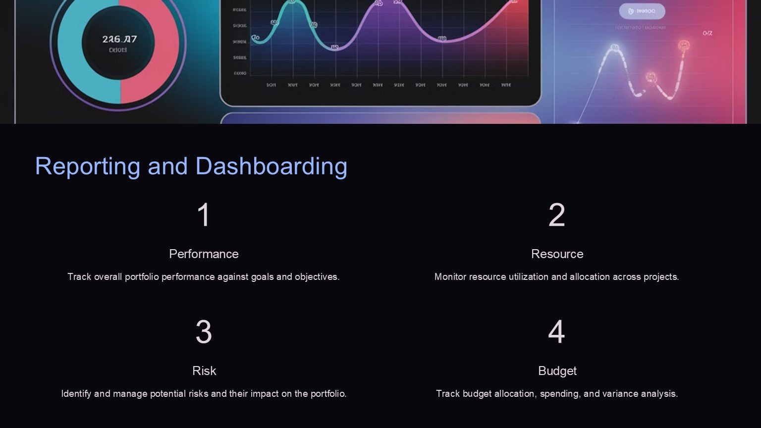3. Data charts and graphs for visualizing project portfolio data trends.