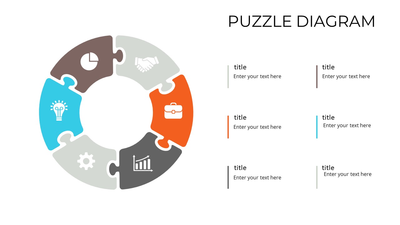 Overall, the Puzzle Diagram is a dynamic and versatile tool that can help you communicate your ideas effectively and creatively. Whether you are a business professional, educator, or creative thinker, this diagram is sure to become an essential part of your visual toolkit. Elevate your presentations and projects with the Puzzle Diagram today!