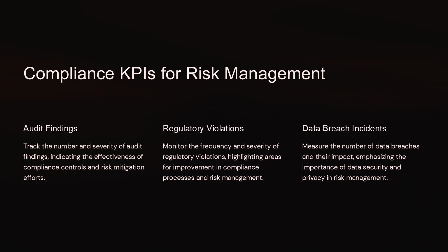 The Risk Management KPI PowerPoint Template is a powerful tool for organizations looking to effectively monitor and manage risks in their projects or operations. This professionally designed template provides a range of key performance indicators (KPIs) that are essential for evaluating and mitigating risks.
