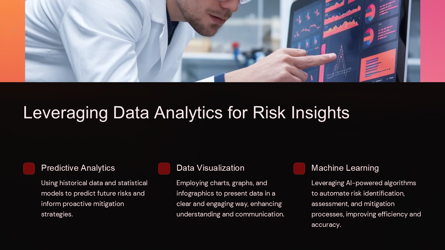 3. Data visualization: Visualize complex risk data with easy-to-understand charts, graphs, and tables to help stakeholders make informed decisions.