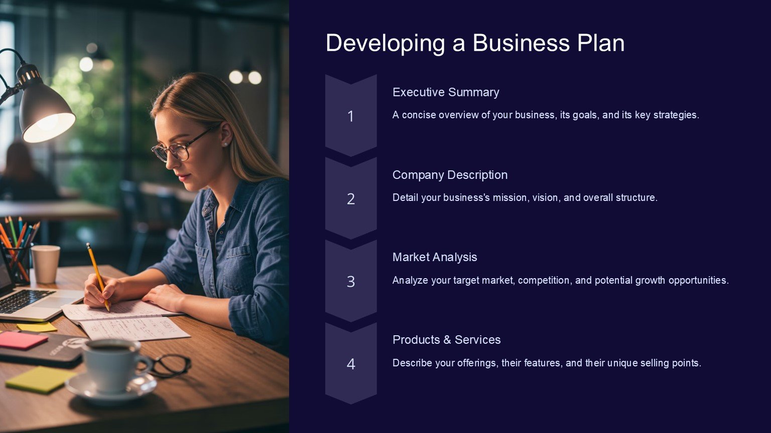 This template offers a clean and modern design, with a range of slides tailored specifically for new business owners. From outlining your business plan and strategy to detailing your target market and financial projections, this template covers all the essential elements you need to convey to potential investors, partners, or stakeholders.