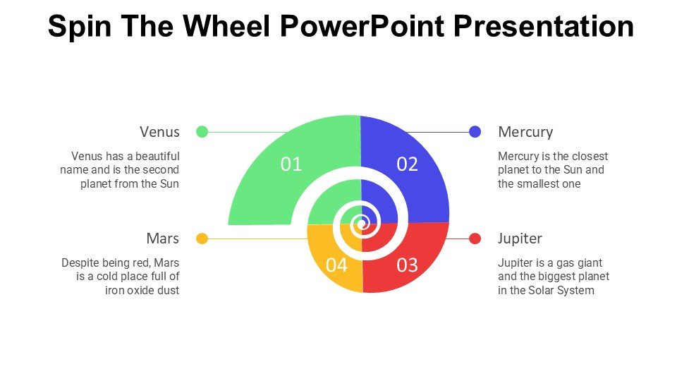 With its easy-to-use setup, you can quickly add or modify the text in each segment of the wheel to suit your specific presentation needs. The design is crisp, professional, and compatible with Microsoft PowerPoint, making it a reliable and stylish choice for presenting complex information in a more digestible and enjoyable format.