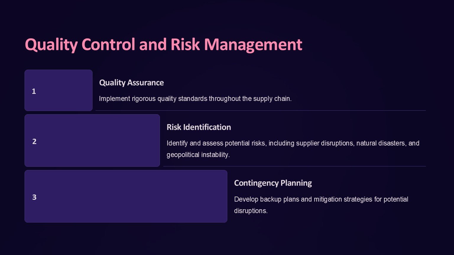 In conclusion, the Supply Chain Management PowerPoint Template is a versatile and user-friendly tool that will enhance your presentations and help you effectively communicate your supply chain strategies and insights. Whether you are a supply chain professional, a business owner, or a consultant, this template will enable you to create impactful presentations that resonate with your audience.