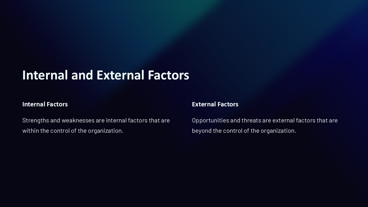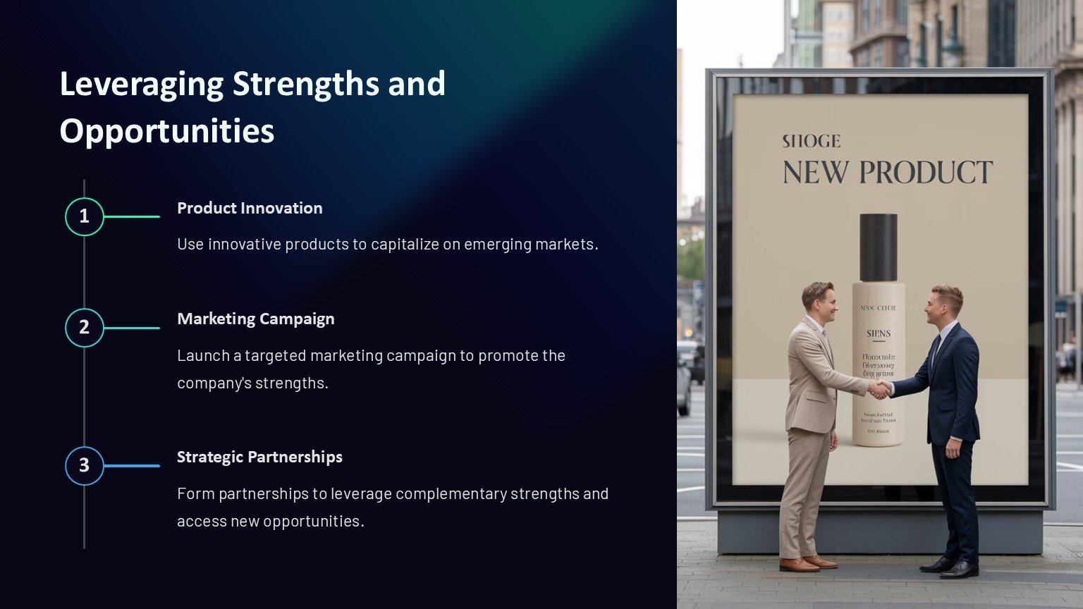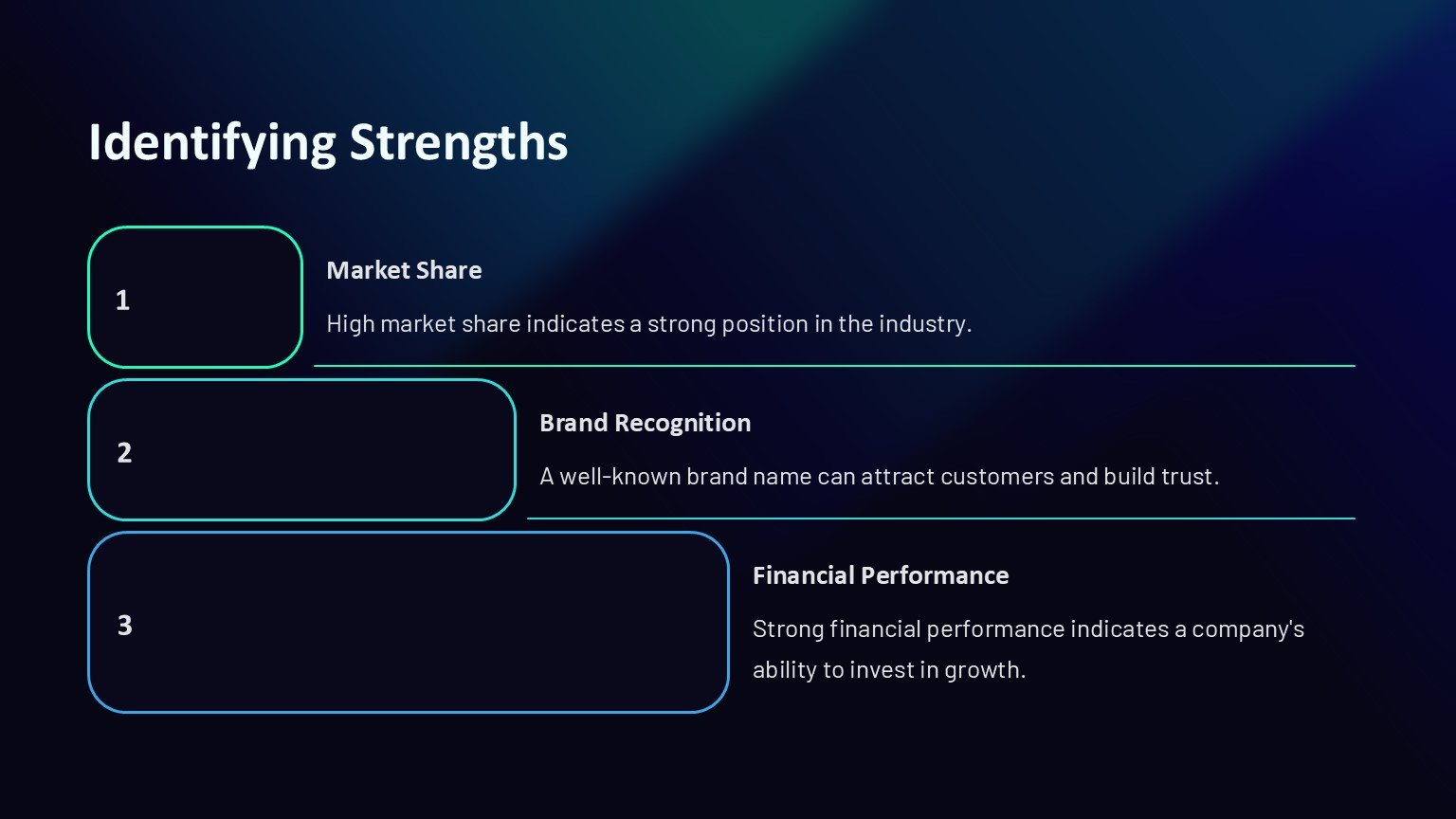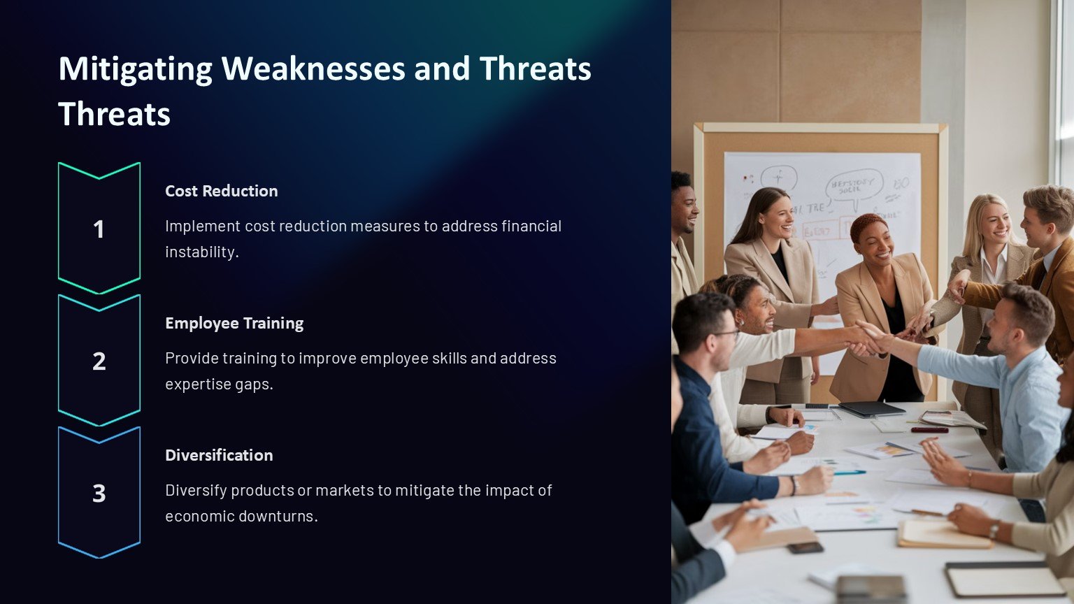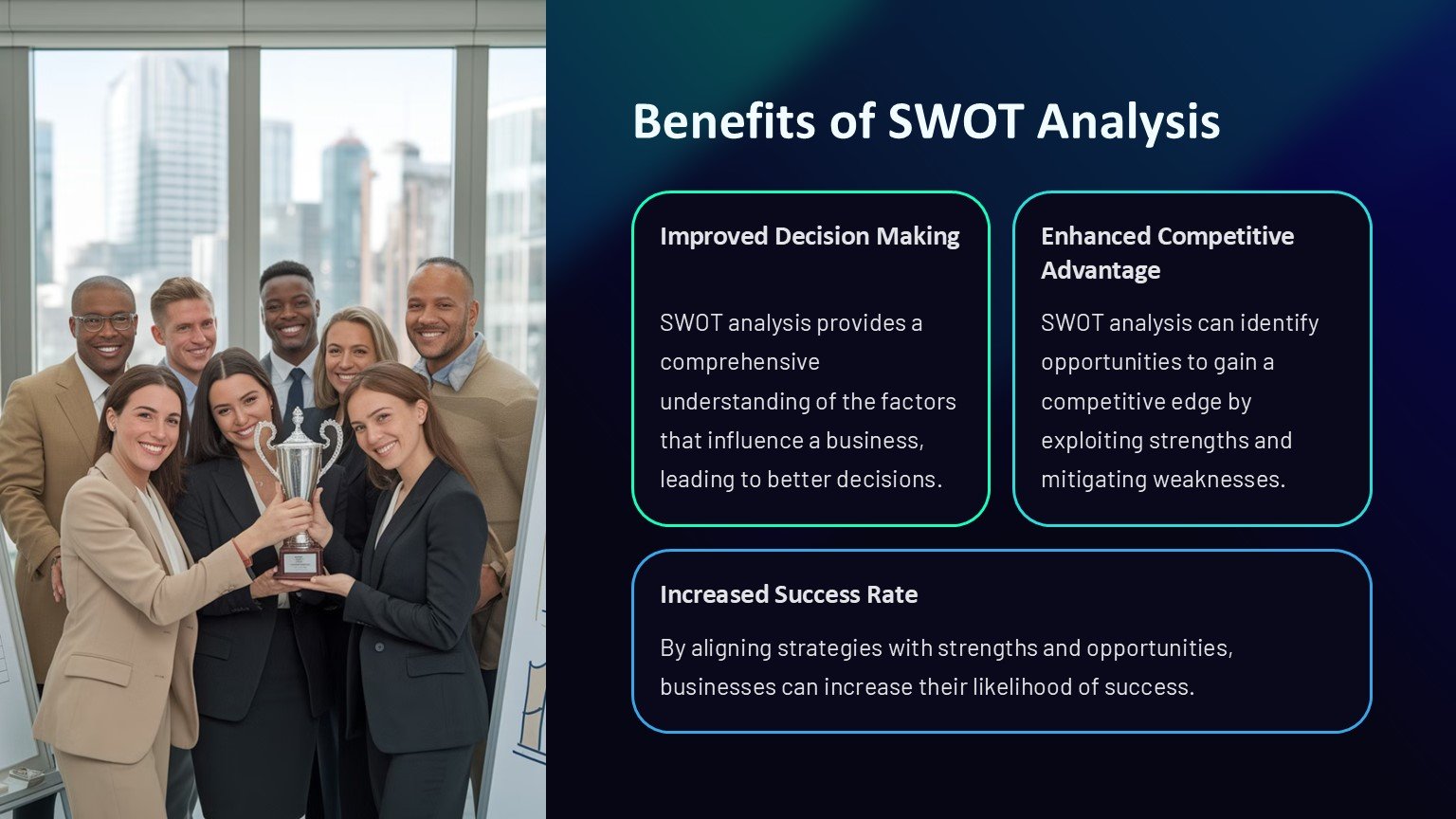 3. Professional Design: The sleek and modern design of the template gives your presentation a polished and professional look. Impress your audience with high-quality visuals and a well-organized layout that enhances the overall impact of your SWOT analysis.