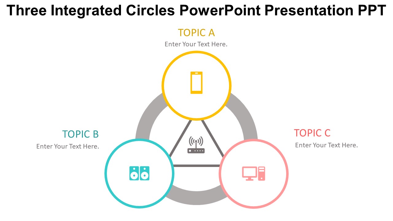 Key features of the Three Integrated Circles PowerPoint Presentation PPT include: