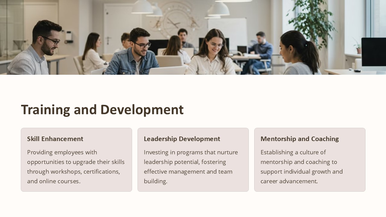 – Varied slide layouts: Choose from a range of slide designs to best showcase your training and development program.